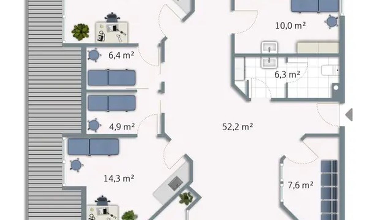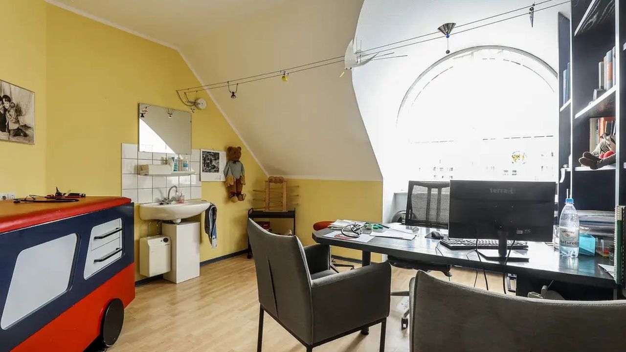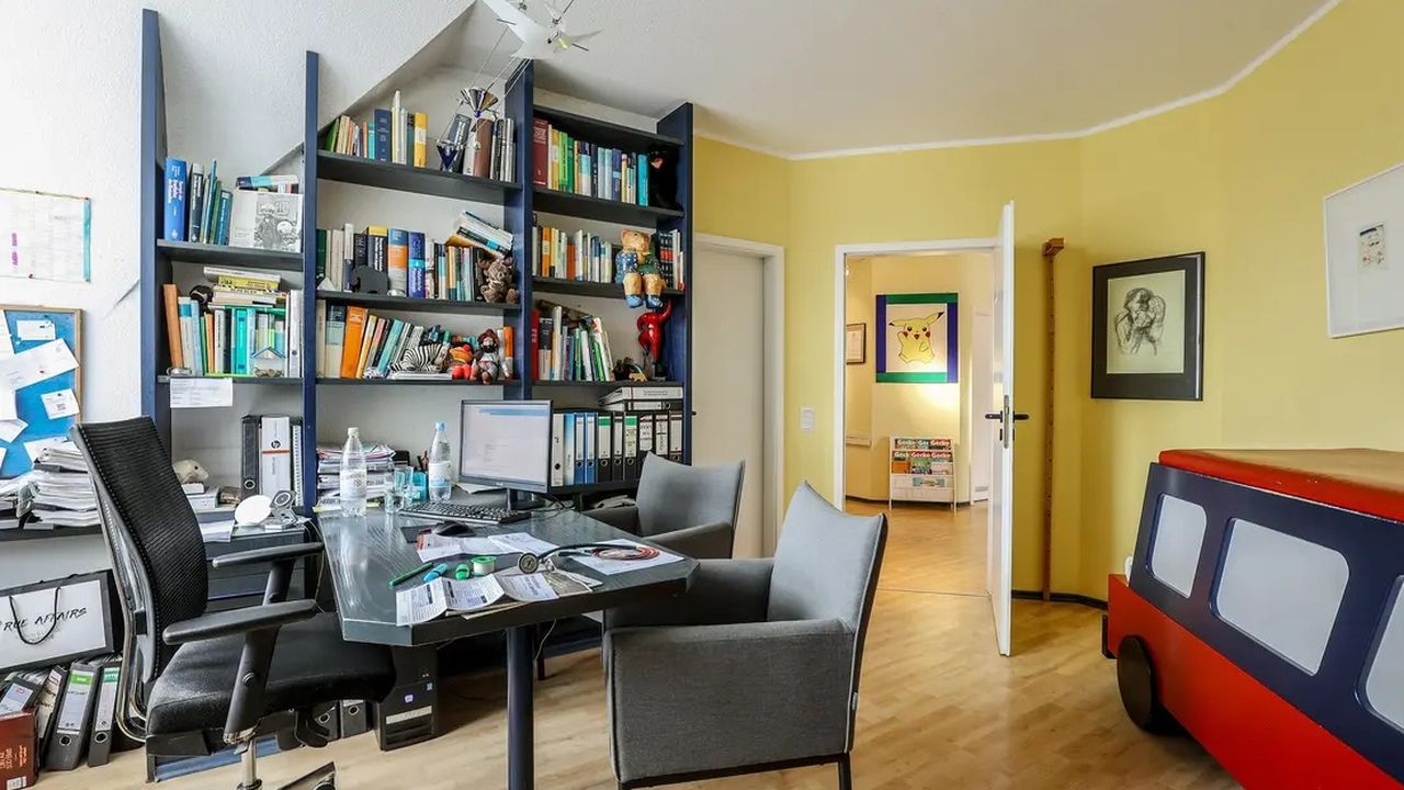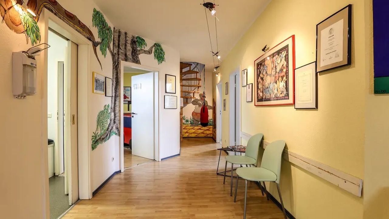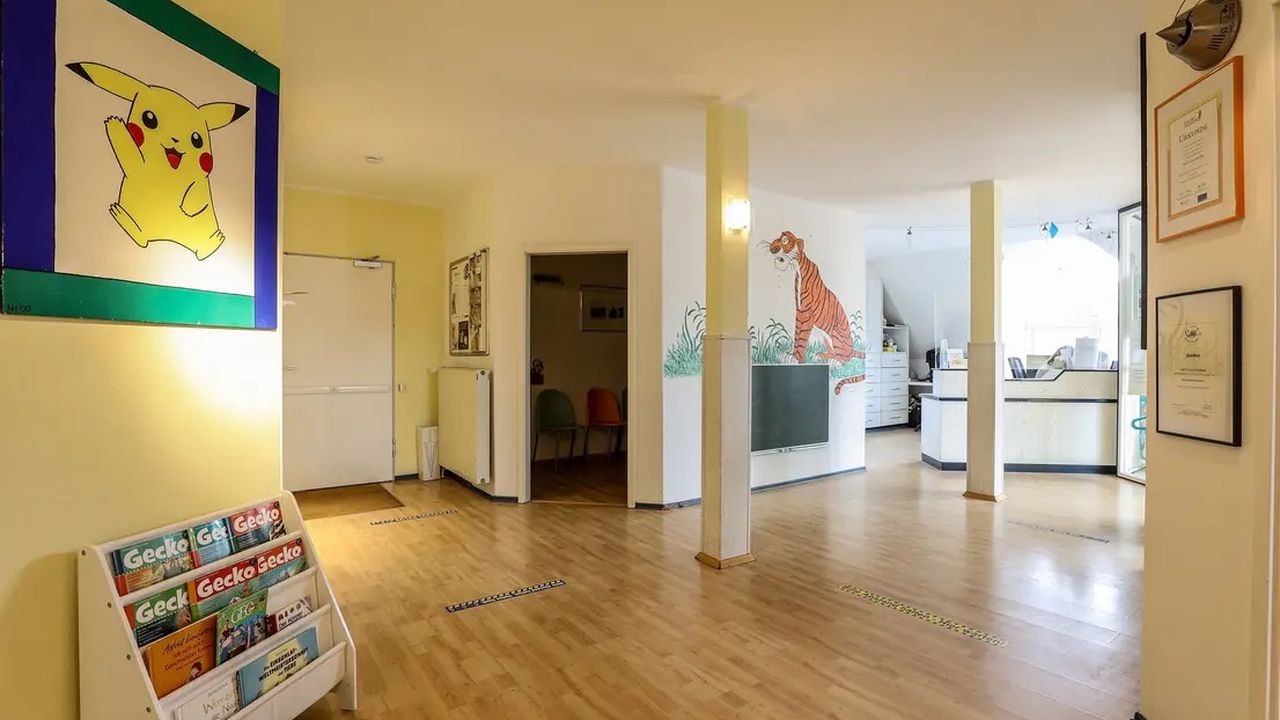 Помещение в настоящее время используется как кабинет врача и имеет потенциал для использования в качестве классической практики или офисного помещения. Примерно на 143 м2 у вас есть один этаж с пятью кабинетами/процедурными кабинетами, центрально расположенной стойкой регистрации, а также туалетом и кухней. Просторный вход со стойкой регистрации предлагает достаточно места для нескольких залов ожидания. В настоящее время в зимнем саду находится зал ожидания с застекленным эркером высотой 4,5 м с галереей, который предлагает потенциал для еще одного офиса.