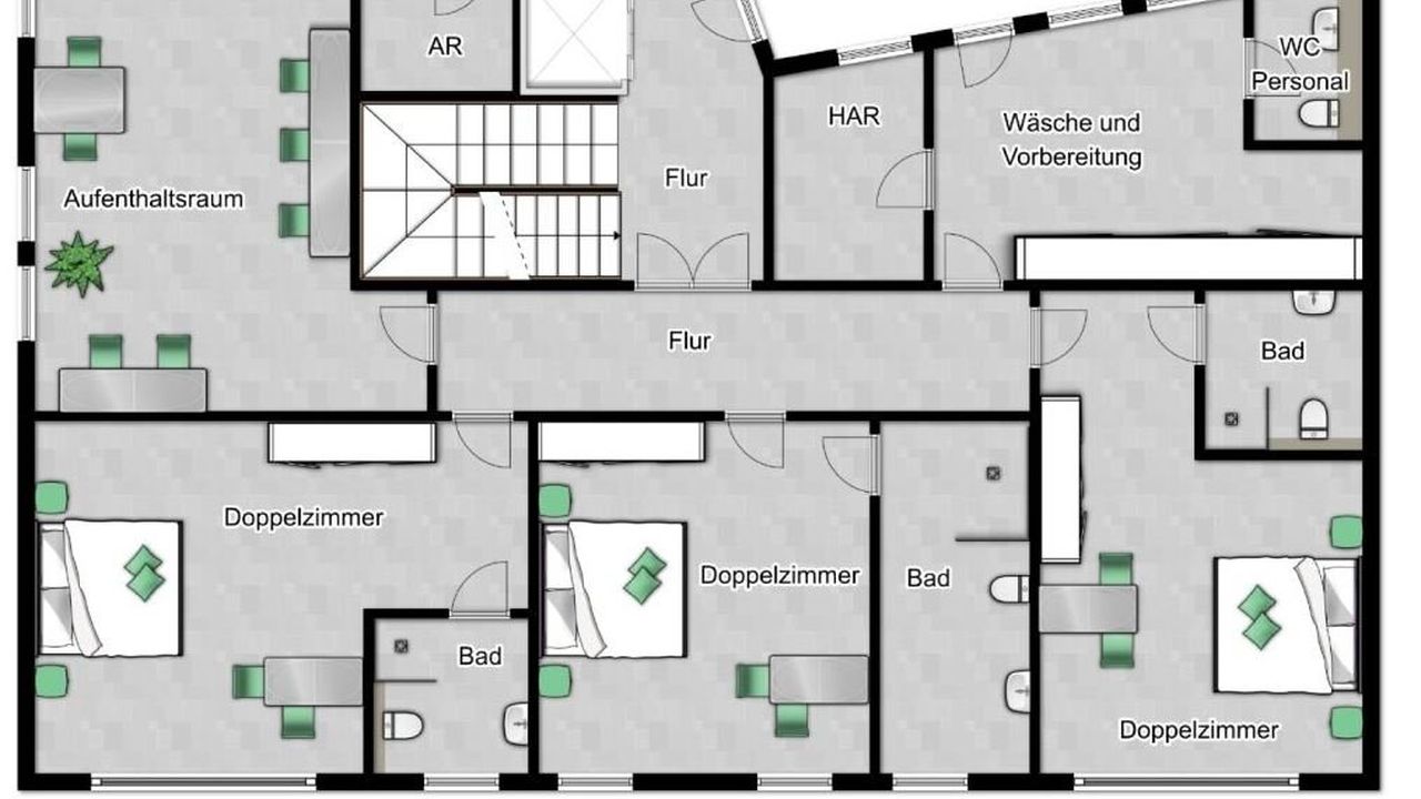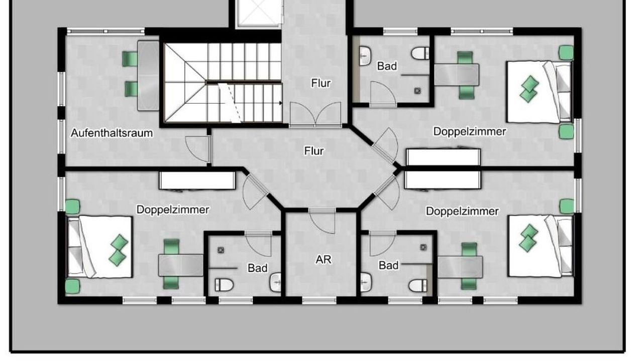 По запросу возможно и до 59 мест запроектировать. Для этой цели архитектор в настоящее время разрабатывает альтернативные планы этажей, которые позволяют разместить как минимум 21 комнату с более чем 40 кроватями.