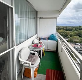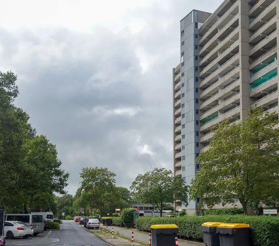 Эта арендная однокомнатная квартира с видом на Рейн расположена в ухоженном многоквартирном доме, построенном в 1972 году в Нойсе, прямо рядом с популярным парком развлечений Rheinparkcenter.