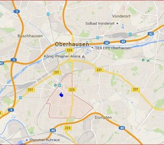 Объект находится в пешеходной зоне центрального района Altstadt-Süd в Оберхаузене.