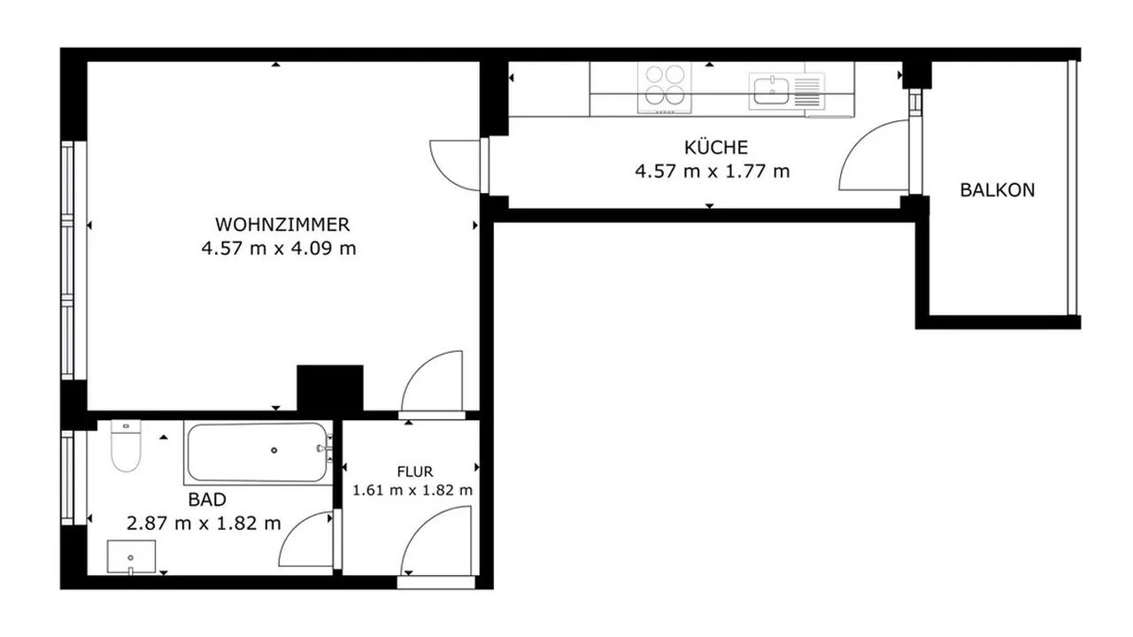Кухня функциональна и предлагает достаточно места для приготовления пищи. Прямой выход на балкон обеспечивает приятное освещение и свежий воздух. В гостиной и спальне преобладает современный паркет из натурального дерева, благодаря которому комнаты выглядят светлыми и уютными.