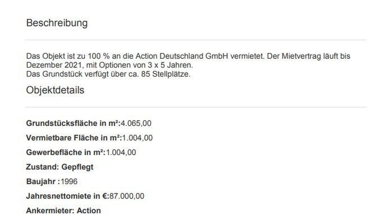 Собственность на 100% сдана в аренду Action Deutschland GmbH.