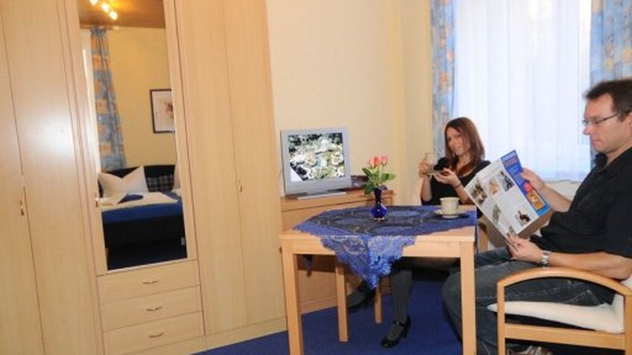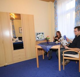 Предлагаем Вашему вниманию отель в туристическом городе Ваймар. В отеле 14 двухместных номеров. Есть оздоровительный кабинет с джакузи, инфракрасной сауной и балконом. В подвале находится ещё одна сауна и солярий.На верхнем этаже расположена трехкомнатная квартира с залом, спальней, столовой, кухней и ванной.