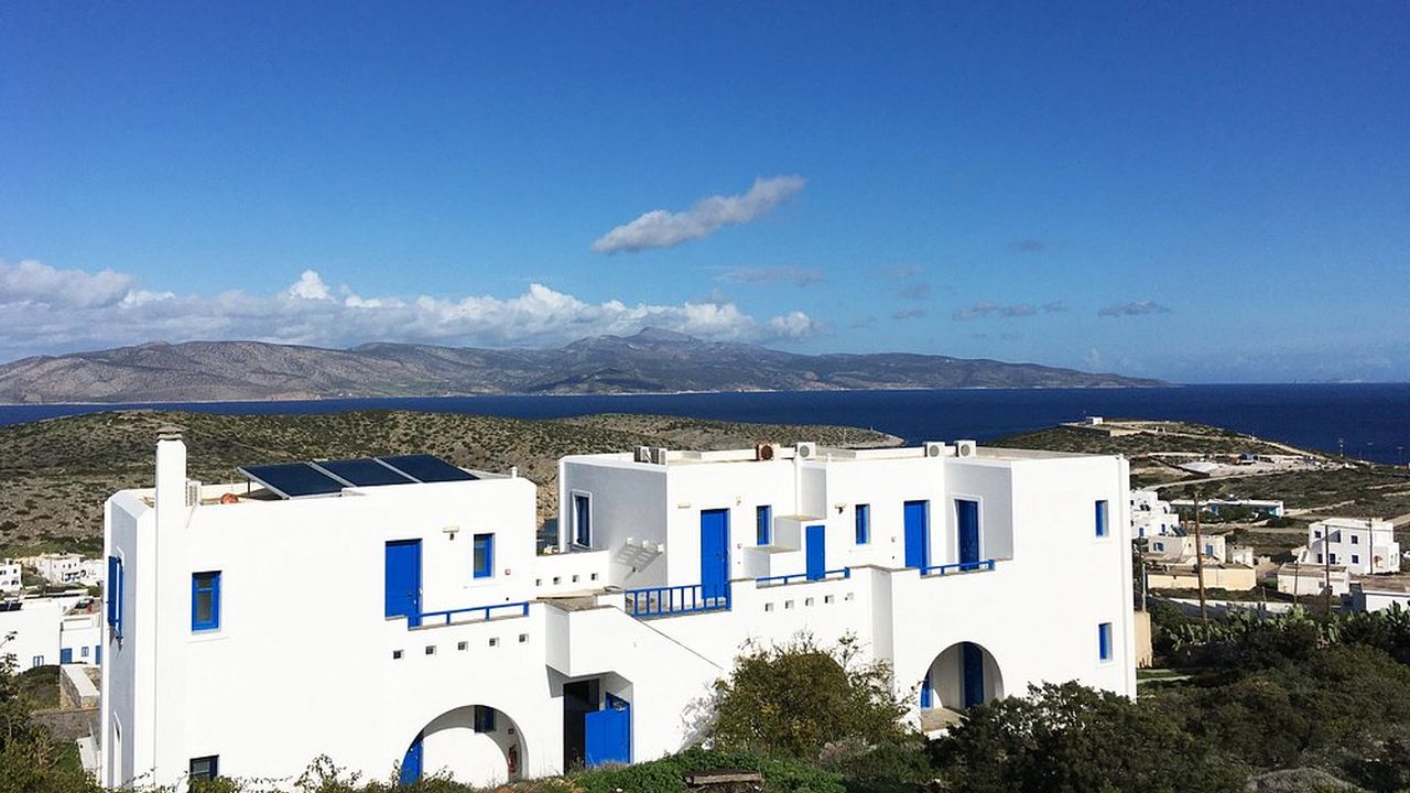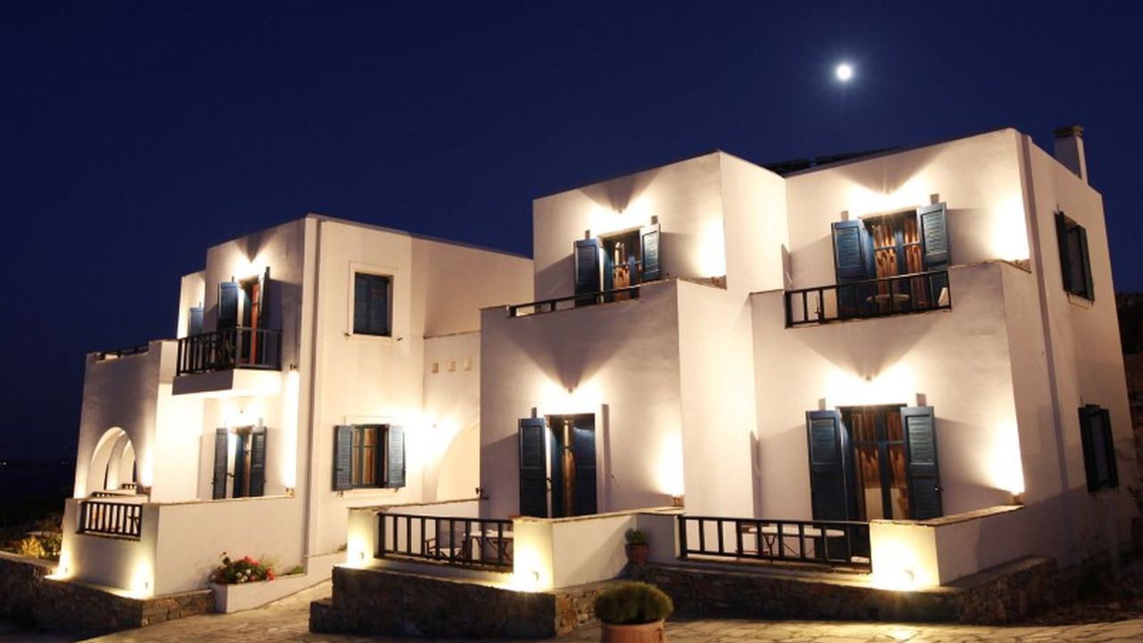 Гостиница расположена на маленьком острове Ираклия, Киклады, который является частью комплекса небольших островов Восточных Киклад к юго-западу от Наксоса. Он построен на вершине холма центральной деревни Ираклия и расположен в 450 метрах от самых популярных пляжей.