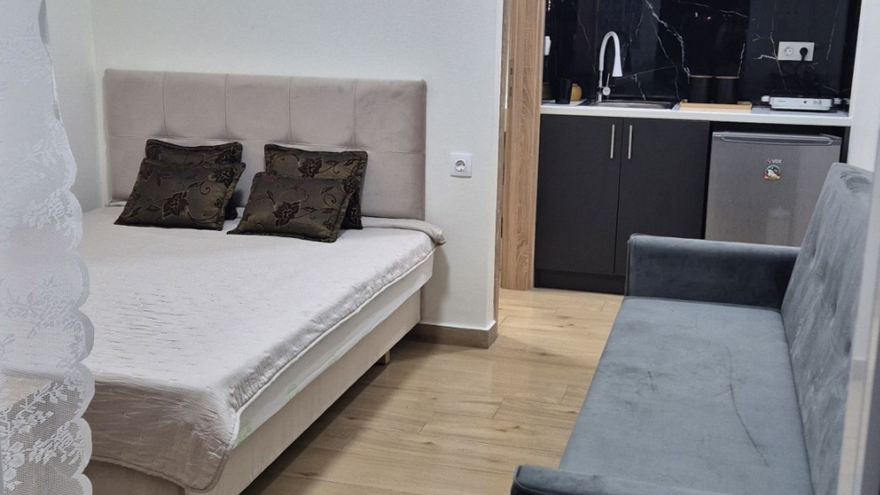 For sale studio of 27m2 + 15m2 terrace with pavilion, ground floor in Olympic Beach. Price 60,000 e Contact phone +381 65 3000 503 viber/whats-app