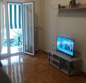 Продается квартира площадью 50 кв.м в Афинах. Квартира расположена на третьем этаже и состоит из одной спальной комнаты, гостиной, одной кухни, одной ванной комнаты. У объекта есть солнечные батареи для нагрева воды, кондиционер, тенты, отопление. Недвижимость продается с мебелью. В здании расположен лифт.