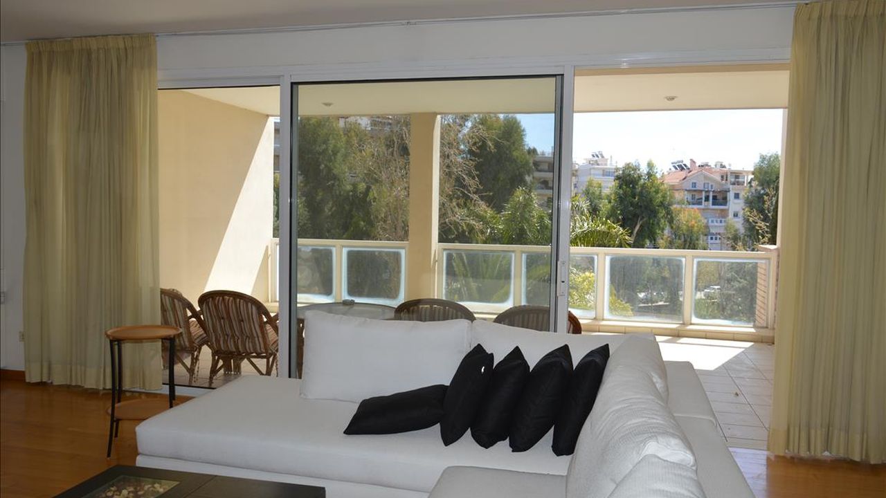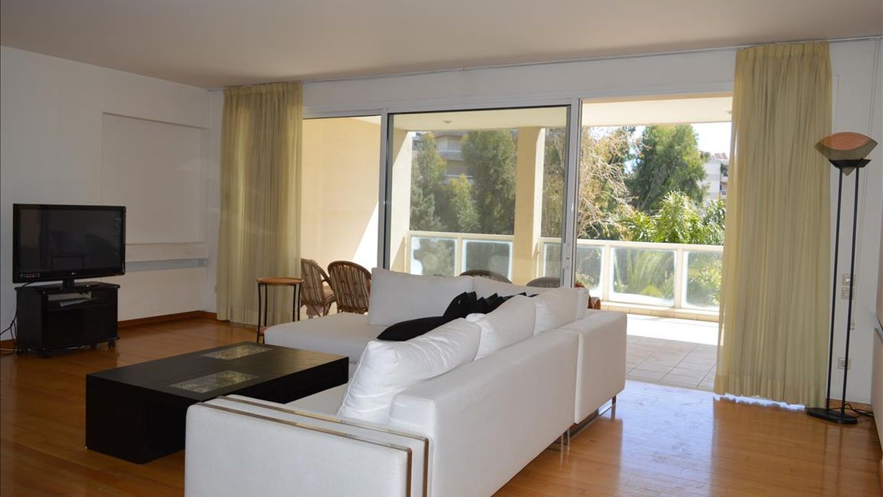 For sale apartment of 200 sq.meters in Athens. The apartment is situated on the 3rd floor. It consists of 3 bedrooms, living room with kitchen, one kitchen, one bathroom, one WC, one storeroom. Flat has front layout. A magnificent view of the city, the sea opens up from the windows. There is a fireplace and heating. Extras included with the property: garden, garage. The apartment is located in Paleo Faliro area The residents of building has the opportunity to use the services of a sports hall and also a swimming pool and Jacuzzi