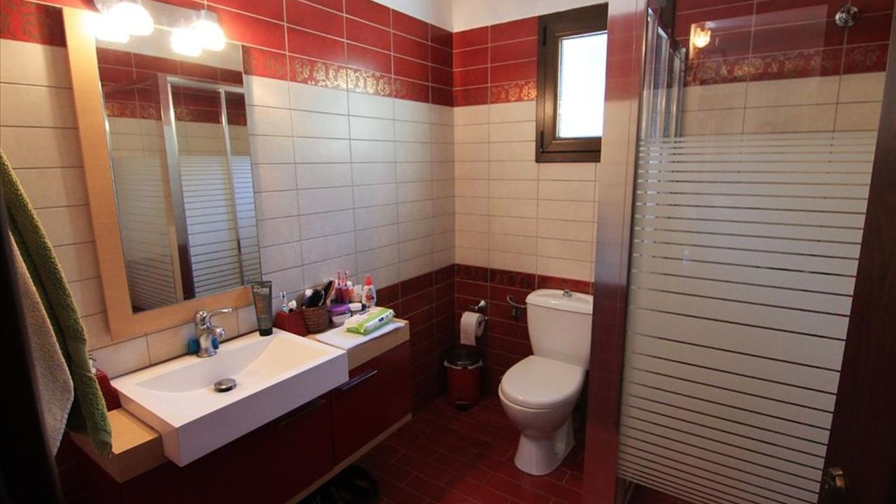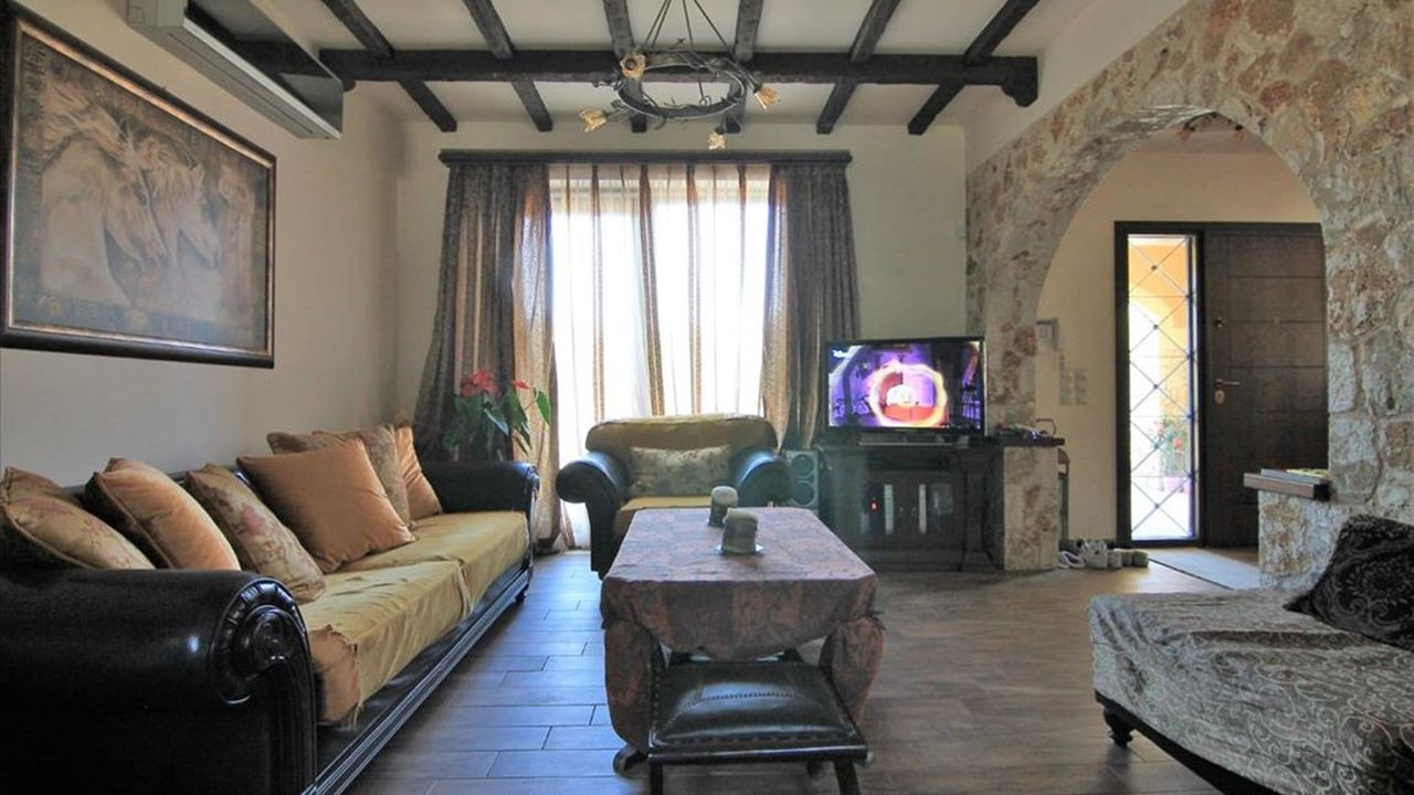 При строительстве дома использовались высококачественные материалы, привезенные из разных уголков Греции и других стран. Двойная термо- и гидроизоляция стен, тройные стеклопакеты, бронированная входная дверь (сертификат пуленепробиваемости), мебель ручной работы из массива дерева, все предметы сделаны на заказ.