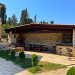 • беседка для барбекю площадью 35 кв. м из камня и дерева со столом и скамейками по спецзаказу
