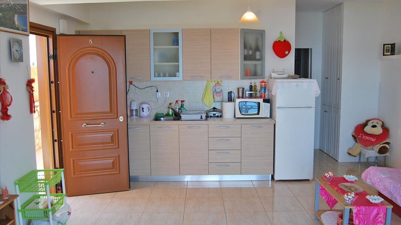На о.Корфу продается квартира площадью 55кв.м. Квартира находится в хорошем поселке с самым лучшим галечным пляжем на острове. Состоит квартира из гостиной с кухней, спальней и ванной комнаты с душевой кабиной. Также есть веранда площадью 25 кв.м. с фантастическим видом на море. В квартире установлена кухоная мебель и кондиционеры. У квартиры есть свое парковочное место.