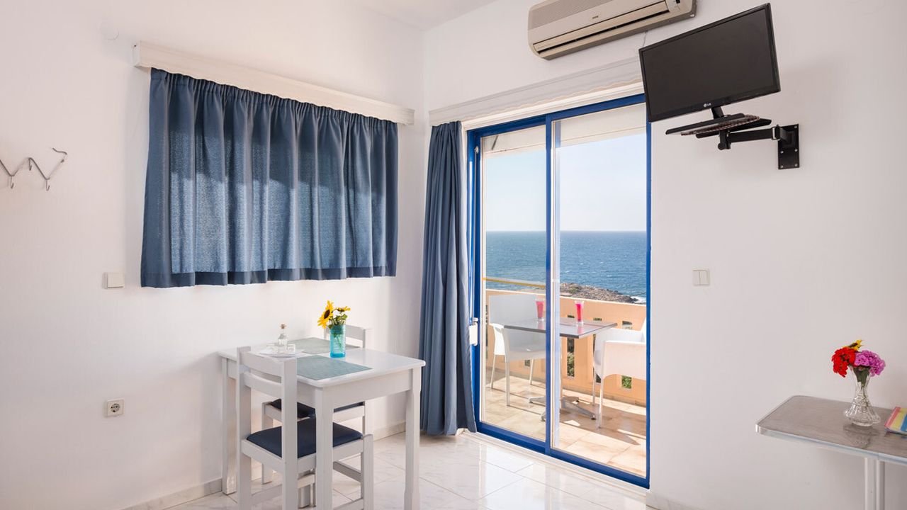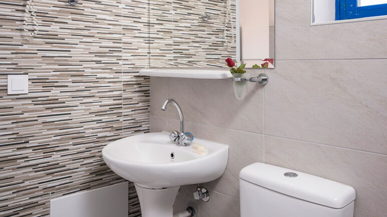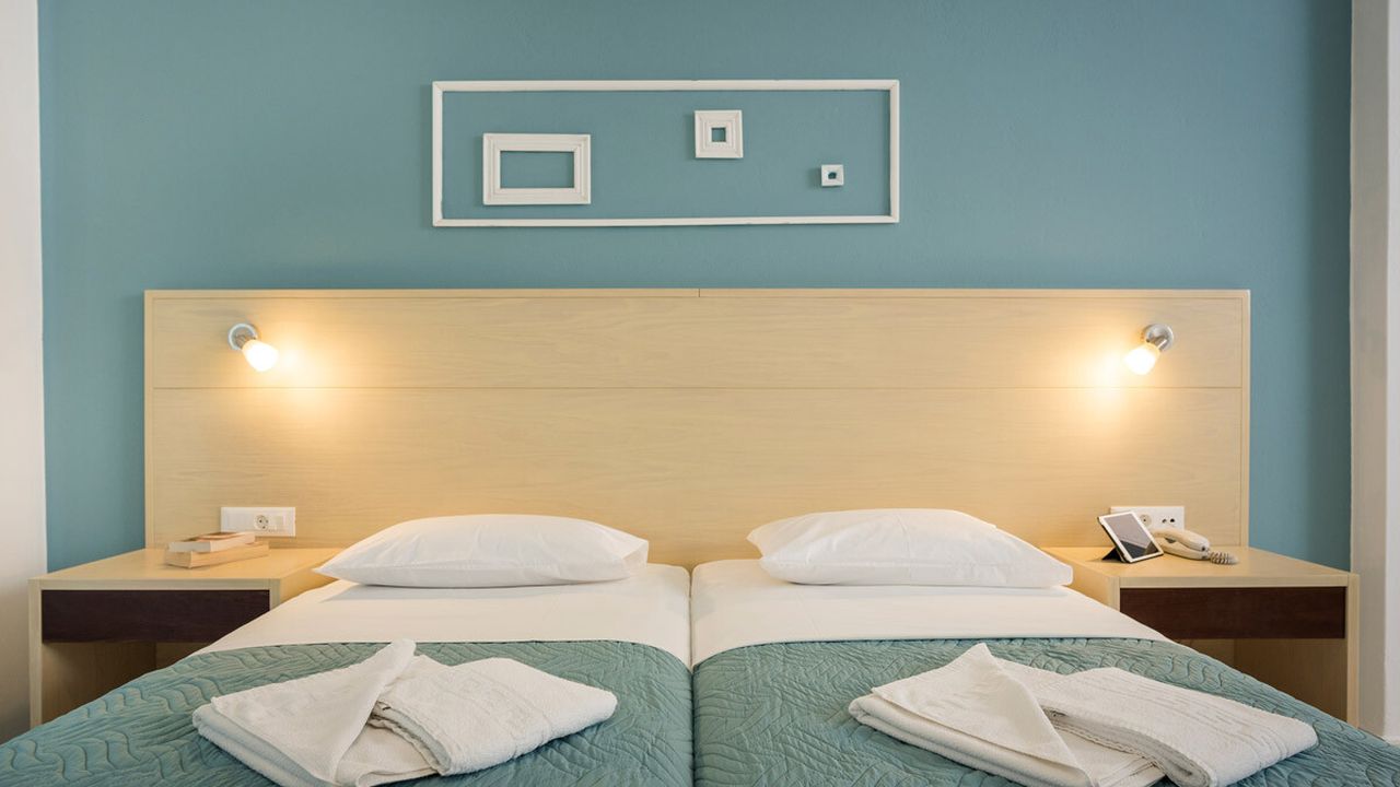 В отеле также есть общий бассейн для гостей, стойка регистрации и кухня с зоной отдыха, где подают завтрак. На первом этаже также есть кладовая, прачечная и 2 офиса. Стоит отметить, что отель имеет вид на море и горы, а окна выходят на улицу.