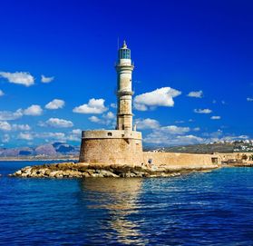 Греция. Крит. Отель с видом на маяк в Старом Венецианском порту Ханьи.