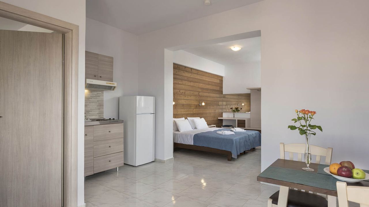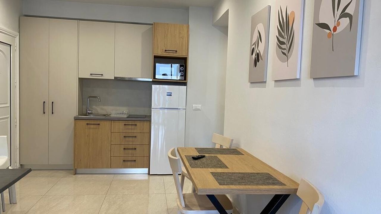 3 студии 28 кв.м. с 1 двуспальной кроватью, 1 туалетом с душем, гостиной-кухней-столовой.