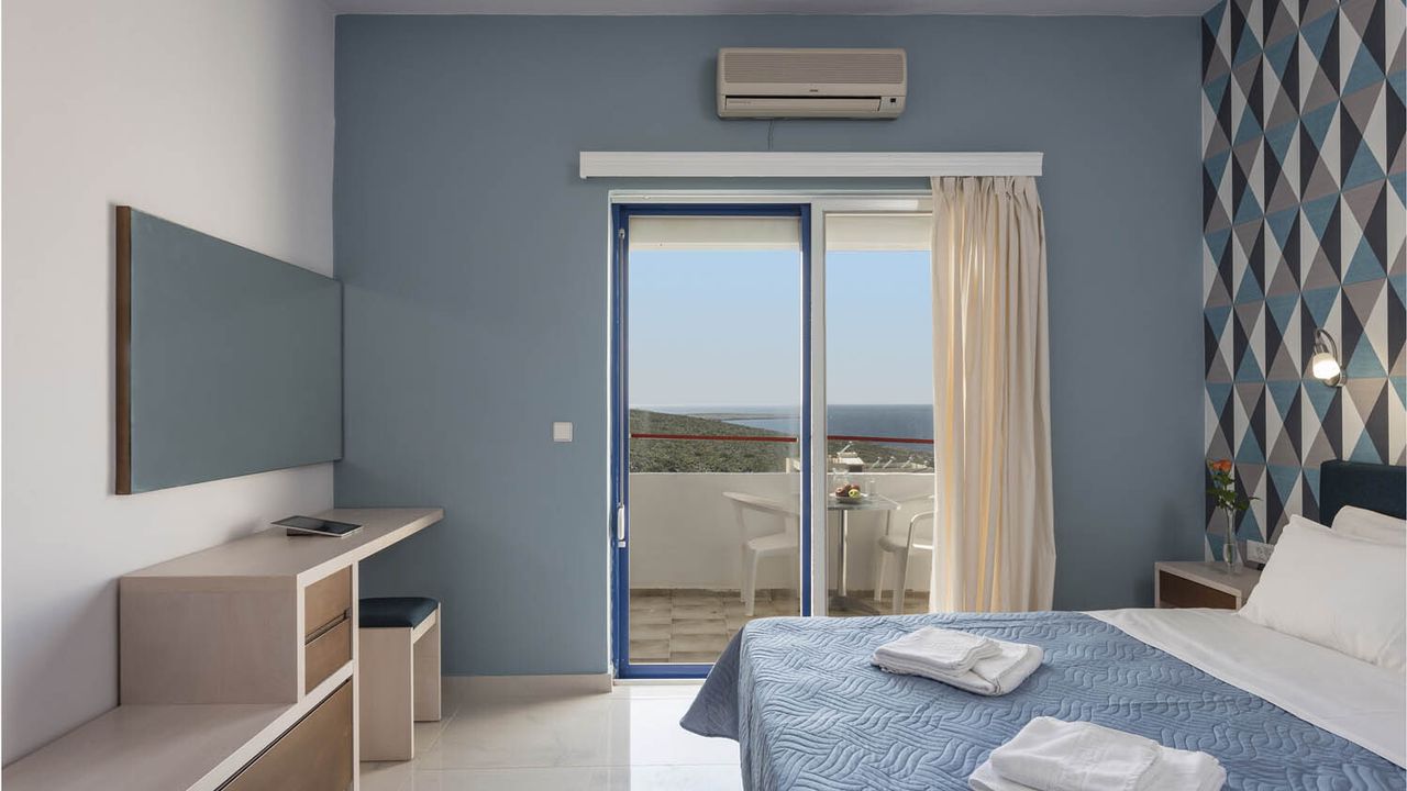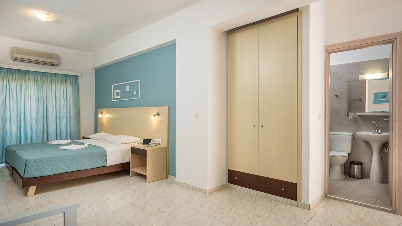 В отеле также есть общий бассейн для гостей, стойка регистрации и кухня с зоной отдыха, где подают завтрак. На первом этаже также есть кладовая, прачечная и 2 офиса. Стоит отметить, что отель имеет вид на море и горы, а окна выходят на улицу.