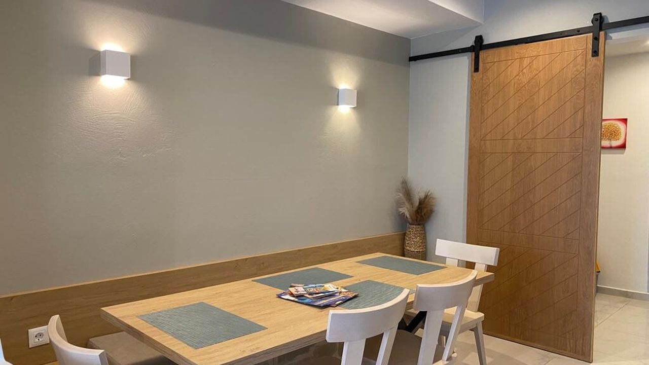 2 студии 38 кв.м. с 1 двуспальной кроватью, 1 туалетом с душем, гостиной-кухней-столовой.