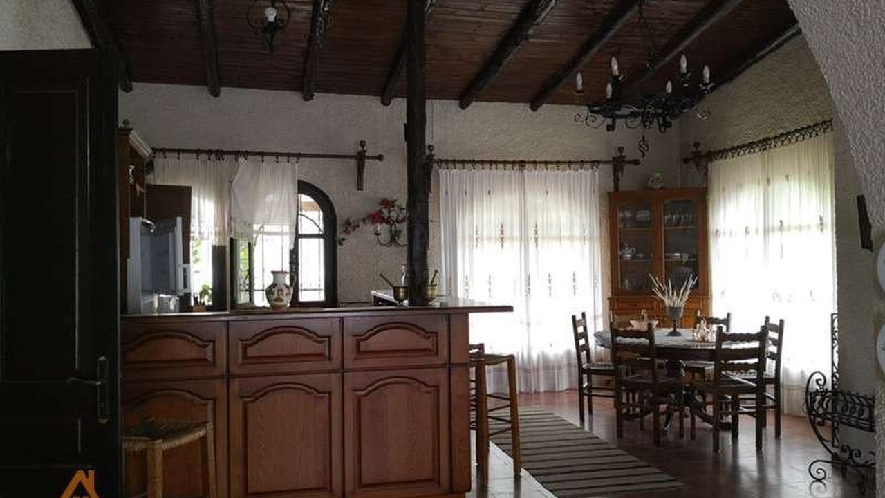It's built around a central patio and is situated on a hill enjoying fantastic mountain views. The inside has quality carpentry, including the window/door frames with a lot of handmade work put in. In two levels we have 5 bedrooms, 2 living rooms, 2 kitchens, 3 bathrooms, and a storage room. The heating system runs on petrol. In the magnificent garden you’ll see lots of trees, an old well, a stone mill grinder, parking lot and plenty of space for a swimming pool area should the buyer like to add one.