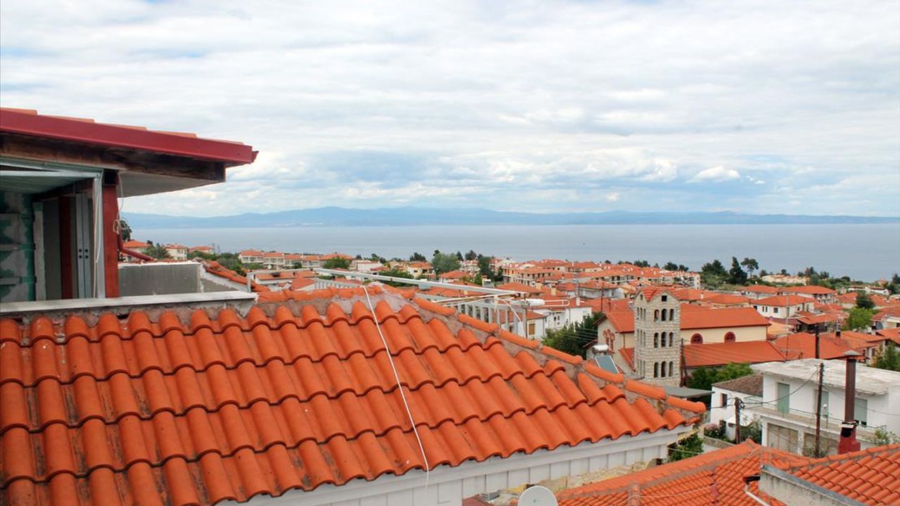 For sale maisonette of 180 sq.meters in Kassandra, Chalkidiki. The maisonette has 4 levels. The ground floor consists of living room with kitchen, one WC. The first floor consists of 3 bedrooms, one shower WC. The second floor consists of living room with kitchen, one shower WC. The third floor consists of living room. A view of the city, the sea opens up from the windows. There is a fireplace. Extras included with the property: parking space.