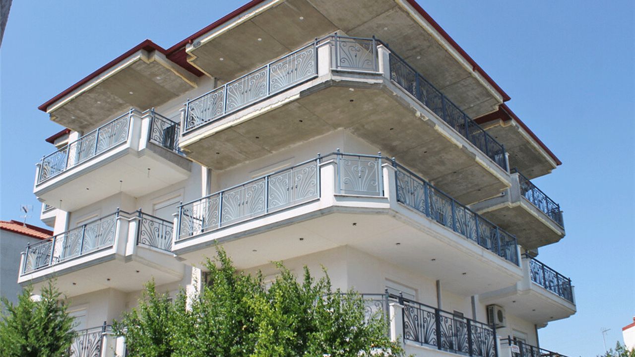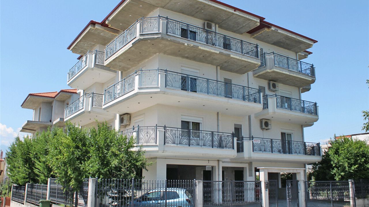 Продается четырехэтажное здание общей площадью 500 кв.м в городе Катерини. На цокольном этаже расположены парковочные места на 8 машин, первый этаж занимают складские помещения и 2 паркинга. Верхние 3 этажа владеют 6 квартирами разной планировки. Участок площадью 450 кв.м имеет угловое расположение. Здание владеет отоплением на дизельном топливе и располагает лифтом. Расстояние до центра города 10 минут хотьбы.