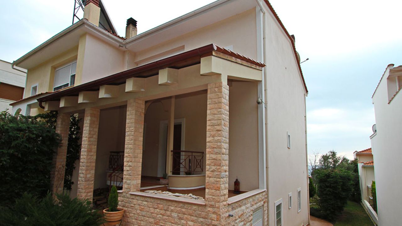 For sale 3-storey villa of 210 sq.meters in Kavala. The semi-basement consists of living room, one shower WC, one storeroom. The ground floor consists of living room, one kitchen, one WC. The first floor consists of 3 bedrooms, one bathroom, one storeroom. There are solar panels for water heating, a fireplace, air conditioning, awnings, heating and a barbecue area. There is an alarm system installed. Extras included with the property: parking space, garden.