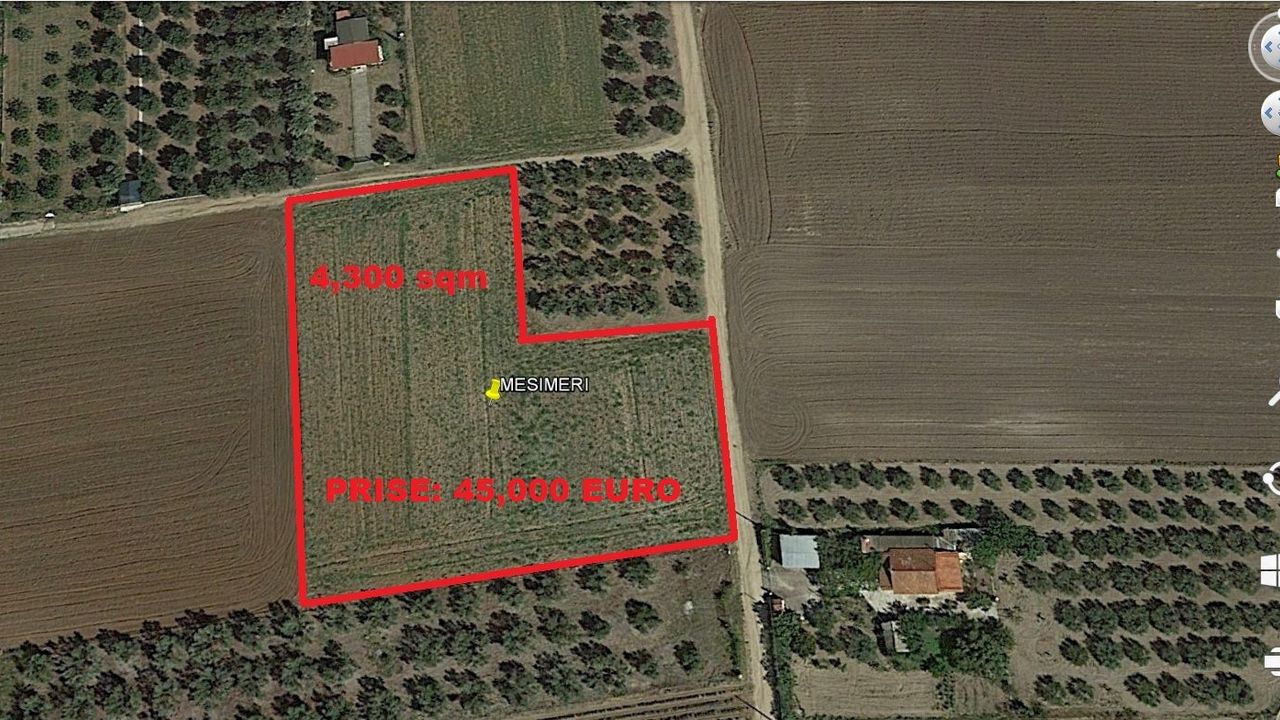 Продается земельный участок площадью 4300 кв.м. в Северной Греции, в тихой живописной деревне Месимери (Северная Греция). На территории подведена вода и электричество, есть возможность построить до 200 кв.м. В нескольких километрах от участка расположен г. Салоники и пляжи Термического залива. Участок удачно расположен между курортами полуострова Халкидики, деревнями Эпаноми и Трилофос. Рядом аэропорт г. Салоники. Продажа напрямую от собственника, без посредников, торг уместен. Янис
