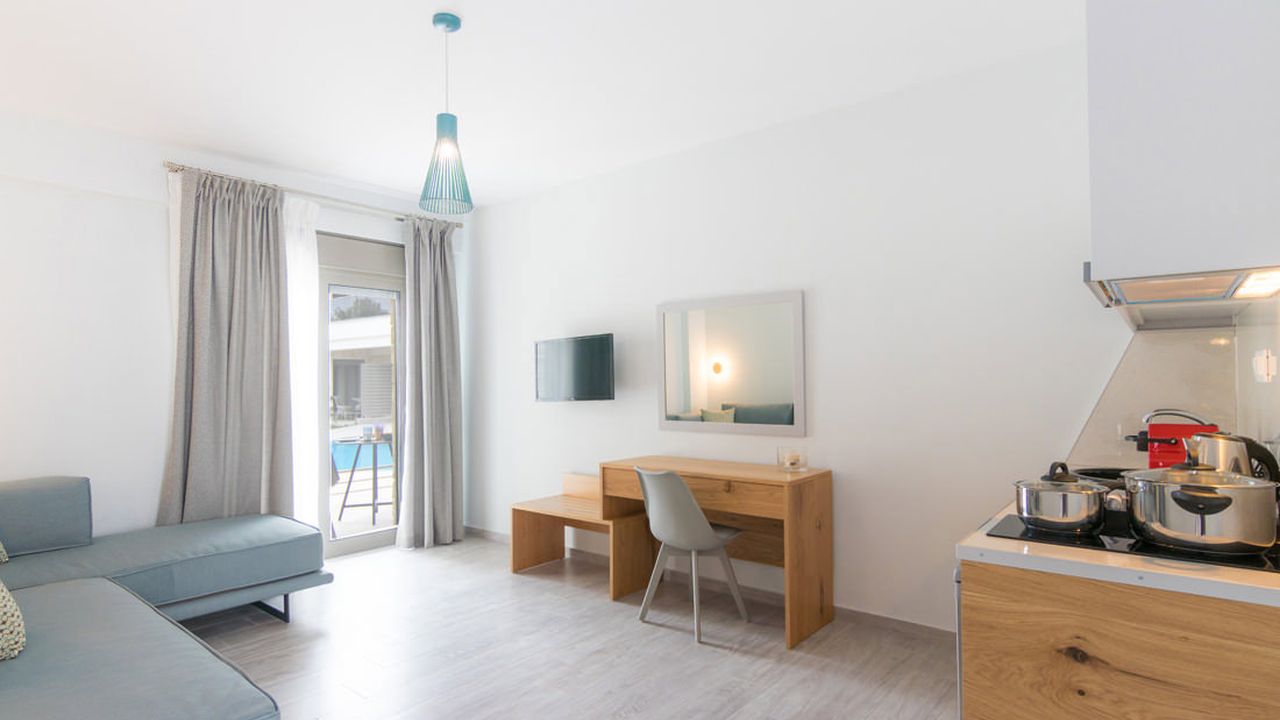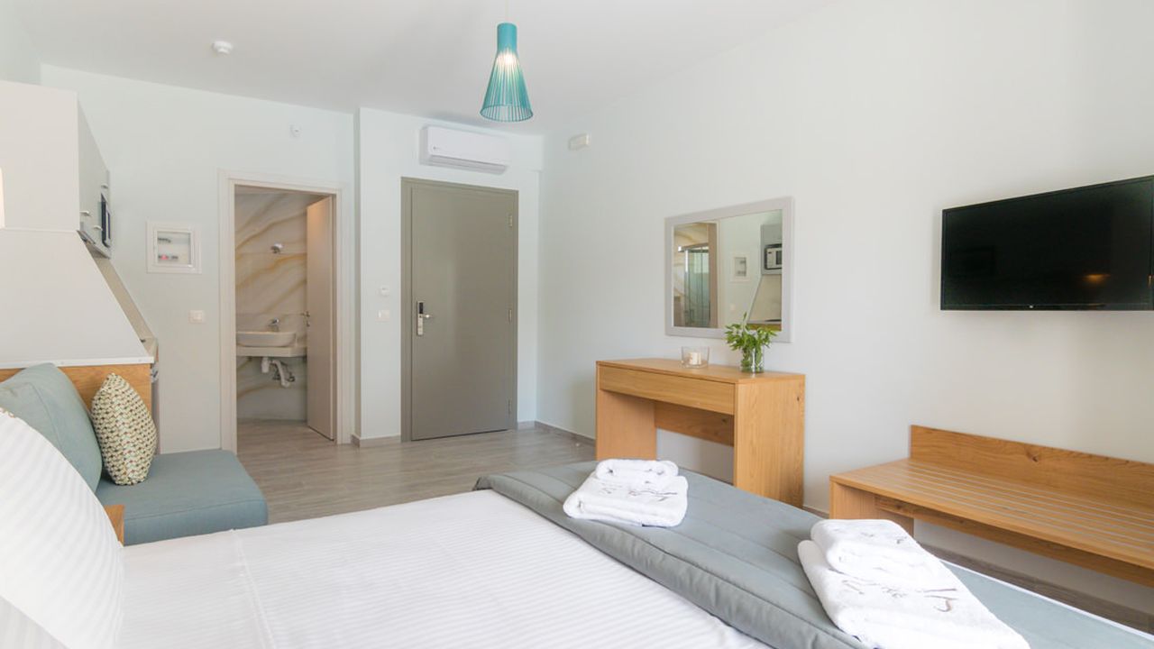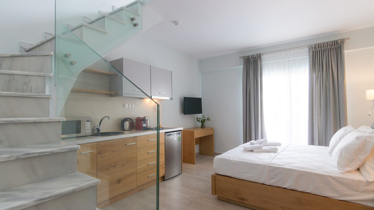 - Первый этаж, где будут построены 9 полностью оборудованных апартаментов (8 однокомнатных студий с душевой и 1 двухкомнатный апартамент).