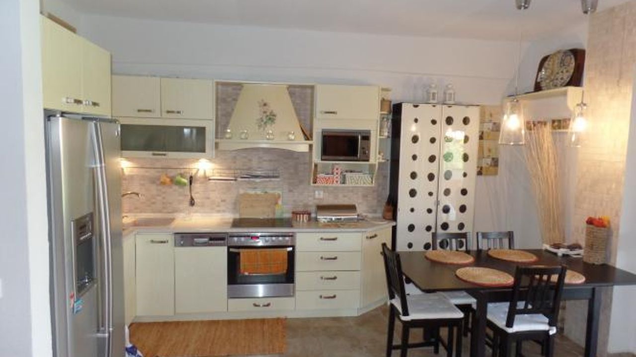 На полуострове Кассандра (Халкидики) в посёлке Скала Фуркас ПРОДАЁТСЯ Дом (Мезонет) - Общей площадью 100 кв.м., состоящий из двух уровней, с 3-мя Спальными комнатами, Гостиной с Камином, совмещённой с кухней, одной ванной комнатой и будуаром. Дом в отличном состоянии, имеется кладовка, Сад - 450м, Барбекю, Индивидуальное Отопление, Кондиционеры, Полностью Меблирован. Просторный, светлый дом, Встроенные шкафы, Сигнализация, Маркизы, Паркинг на два места, балконы 10 кв.м. 2006го года постройки. Находится в 250 метрах от моря - настоящая жемчужина!!! Класс энергоэффективности А+ - Код: 1112889, Цена: 185.000 €
