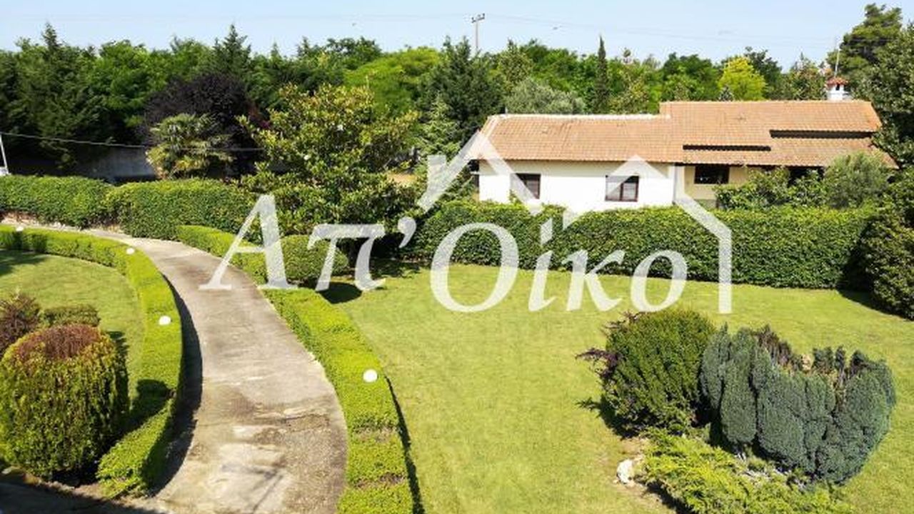 Kassandra - Skala Fourkas FOR SALE Exquisite 300 sq. meters vacation home. It consists of two separate apartments of 100 sq. meters each and a 100 sq. meters lower-ground level area which can be used for multiple purposes. Each one of the two apartments consists of 3 bedrooms, combined living and dining room with a fireplace, semi-separate kitchen and bathroom. Their condition is perfect, with new double-glass window frames, electrical appliances, alarm system, furniture and lots of extras. The house is situated within a 3000 sq. meters plot with a beautiful garden, BBQ, kiosk and wood-fired oven, as well as approximately 50 olive and various fruit trees. It also has a private borehole, an automatic irrigation system, plenty of parking space as well as the right to construct a pool. It is located 400 meters from Fourka beach, 200 meters from the village of Fourka and only 85 kilometers from Thessaloniki International Airport. Code: 1634, Price: 330.000€