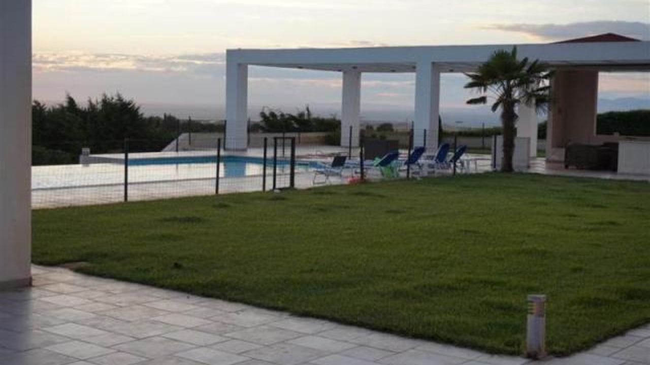 Продается 2-этажная вилла площадью 900 кв.м в пригороде города Салоники. Первый этаж состоит из 6 спальных комнат, гостиной с кухней, 4 ванных комнат, 2 кладовых. Второй этаж состоит из 6 спальных комнат, гостиной с кухней, 4 ванных комнат. Из окон открывается вид на море, на горы, на город. У объекта есть солнечные батареи для нагрева воды, камин, кондиционер, зона барбекю, отопление. Недвижимость продается с мебелью. У объекта установлена сигнализация. К недвижимости относится парковочное место, сад, гараж. На территории расположен бассейн личного пользования.