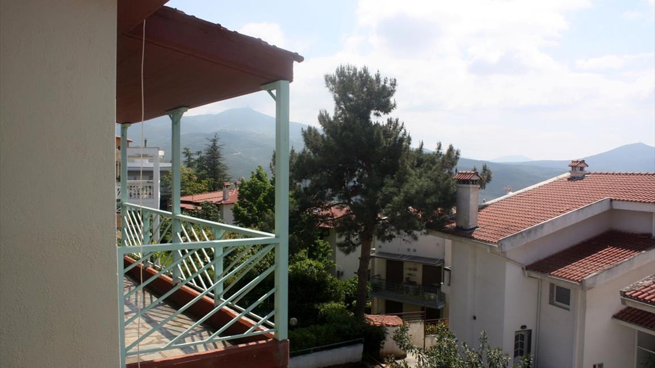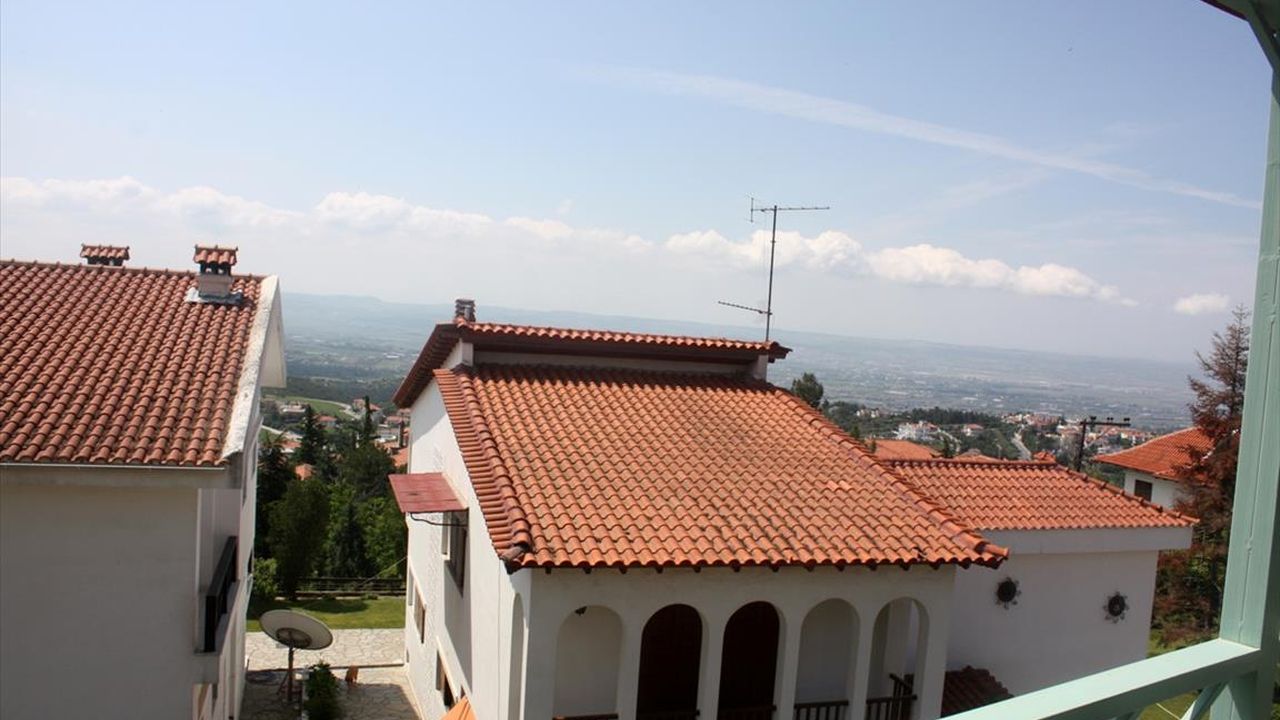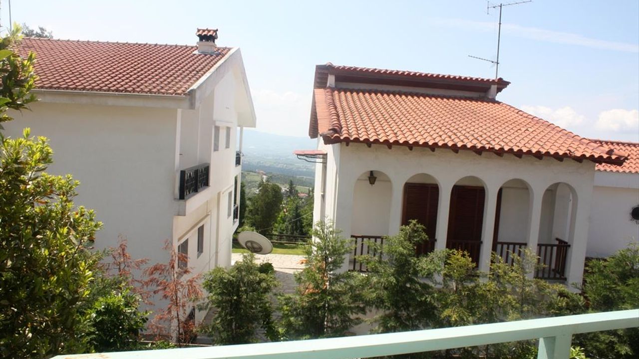 For sale maisonette of 240 sq.meters in Thessaloniki. The maisonette has 3 levels. The semi-basement consists of one bedroom, living room, one kitchen, one shower WC. The ground floor consists of living room, one kitchen, one WC. The first floor consists of 3 bedrooms, one bathroom, one shower WC. A view of the mountain, the forest opens up from the windows. There is a fireplace and heating. Extras included with the property: parking space, garden. The property boasts a swimming pool of private use.