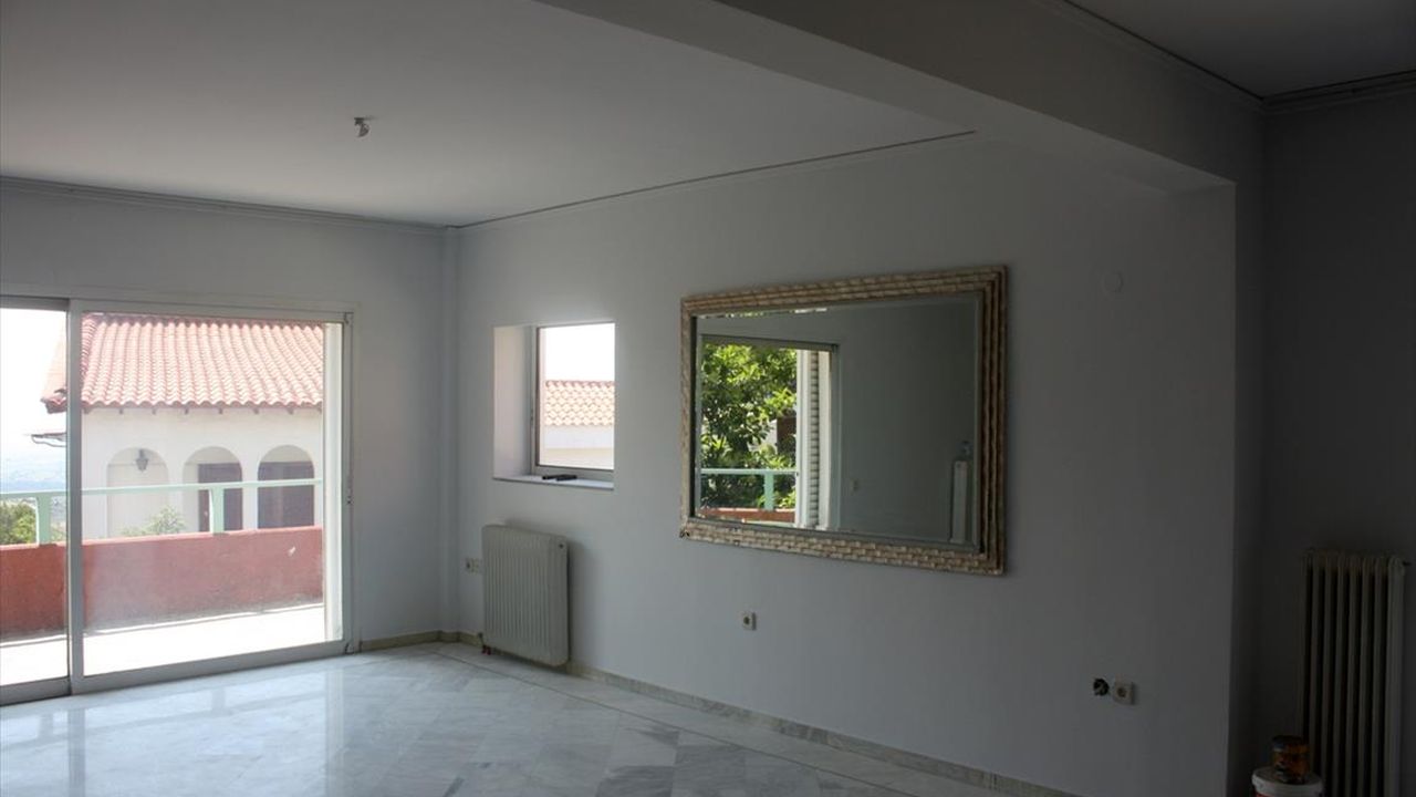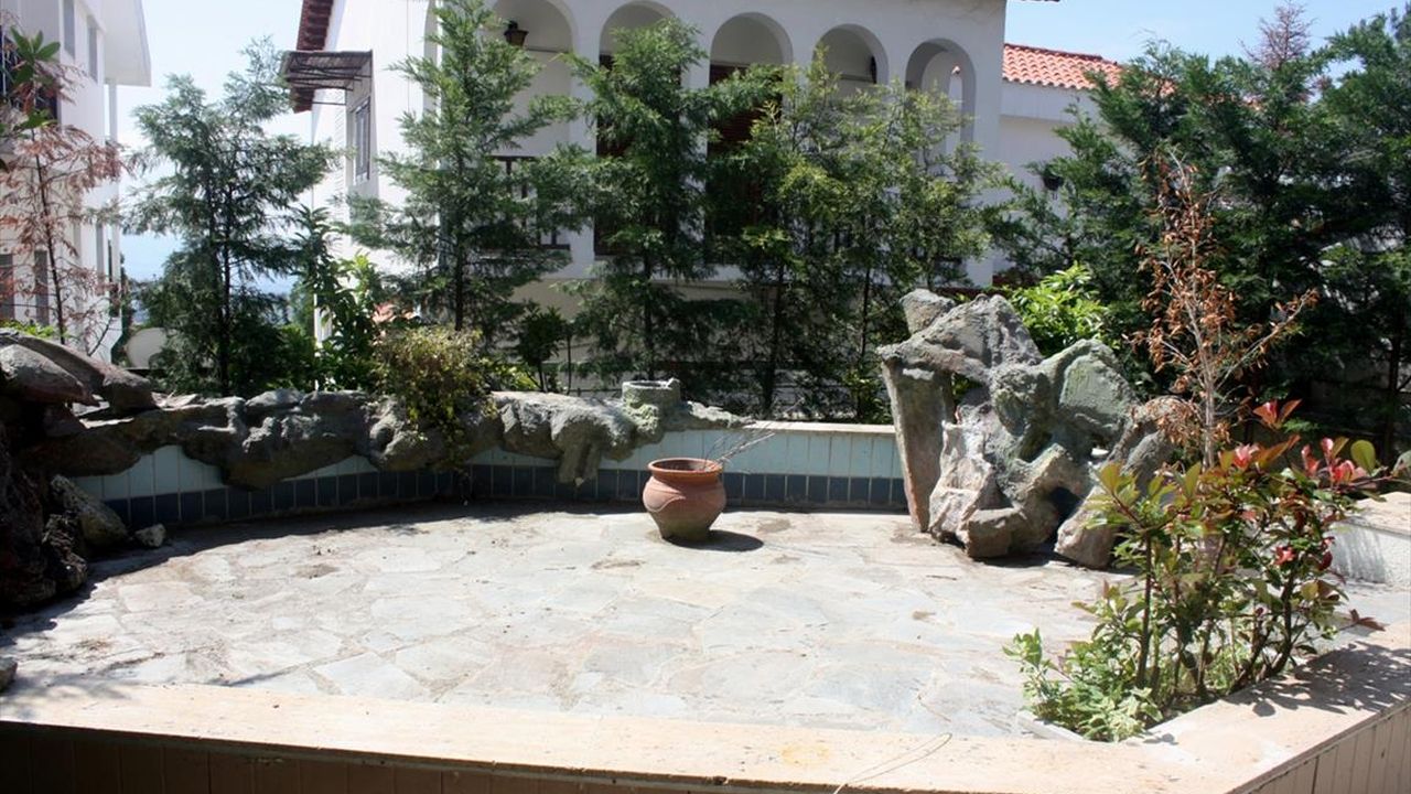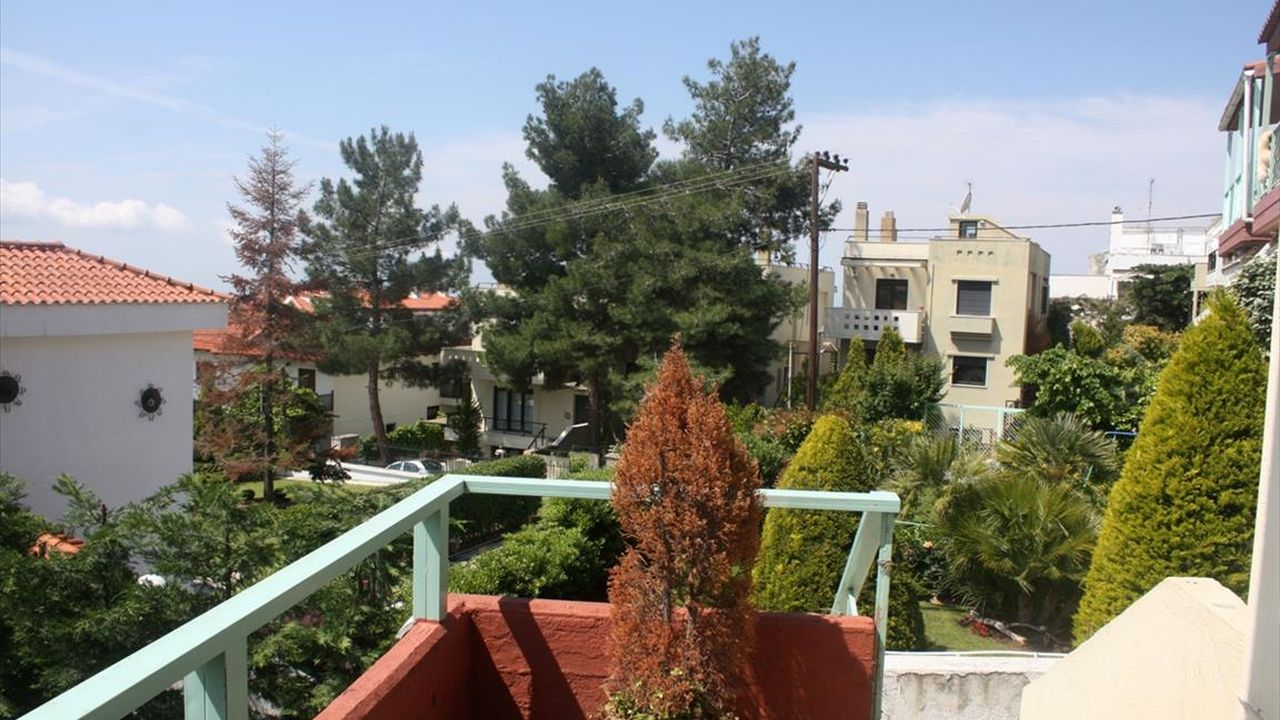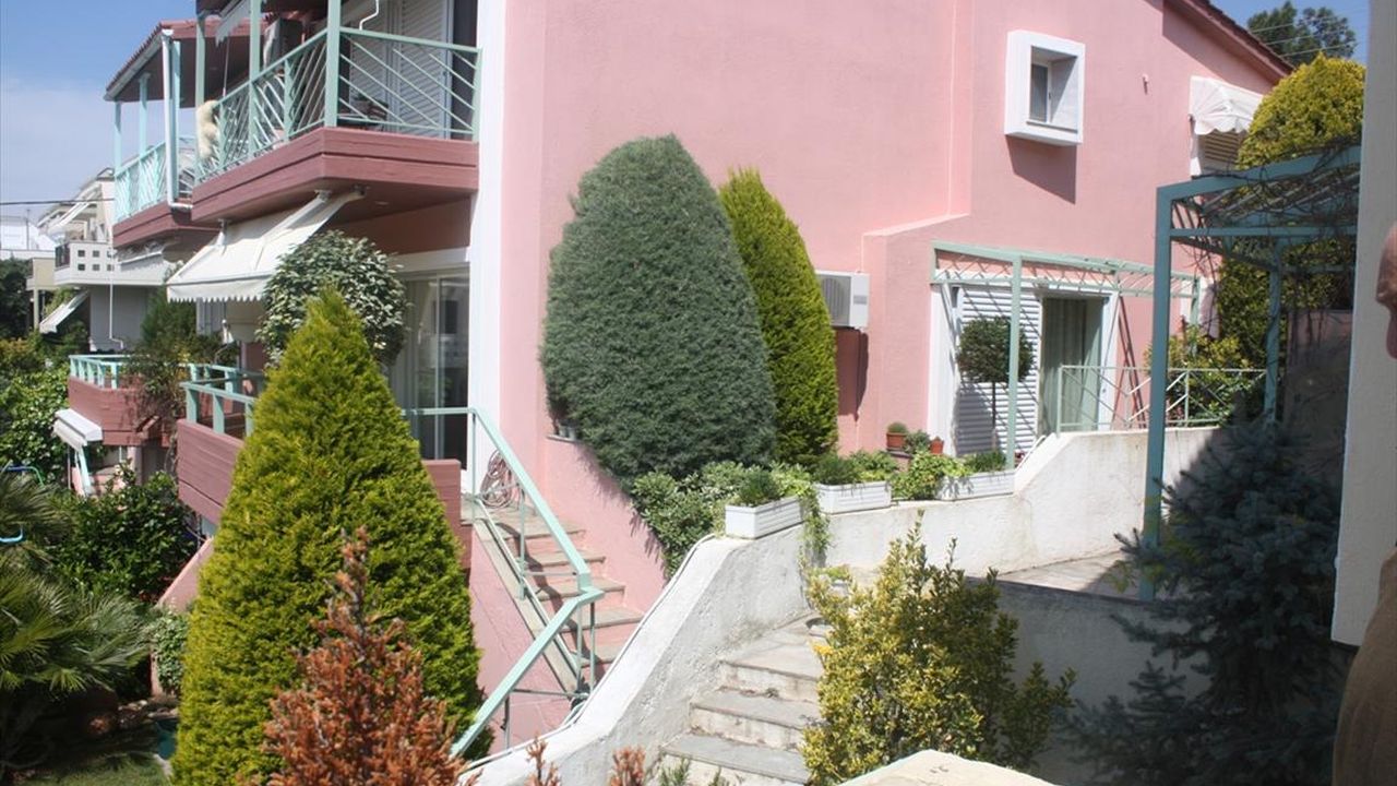For sale maisonette of 240 sq.meters in Thessaloniki. The maisonette has 3 levels. The semi-basement consists of one bedroom, living room, one kitchen, one shower WC. The ground floor consists of living room, one kitchen, one WC. The first floor consists of 3 bedrooms, one bathroom, one shower WC. A view of the mountain, the forest opens up from the windows. There is a fireplace and heating. Extras included with the property: parking space, garden. The property boasts a swimming pool of private use.