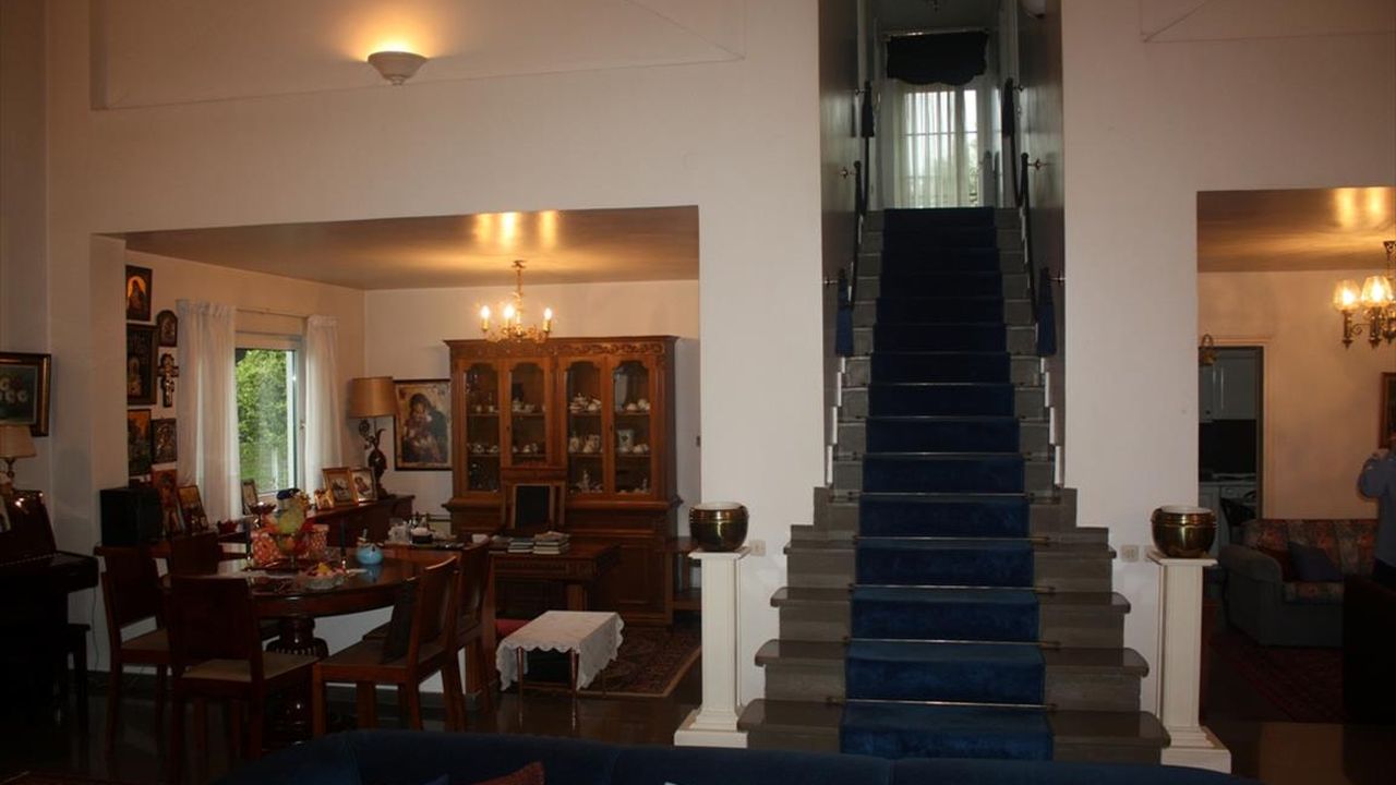 For sale 3-storey villa of 370 sq.meters in Thessaloniki. The semi-basement consists of 2 bedrooms, living room, one kitchen, one shower WC. The ground floor consists of 2 bedrooms, living room, one kitchen, one WC. The first floor consists of 3 bedrooms, one bathroom, one shower WC. There is a fireplace and a barbecue area. The owners will be leaving the furniture with the sale. Extras included with the property: parking space, garden.