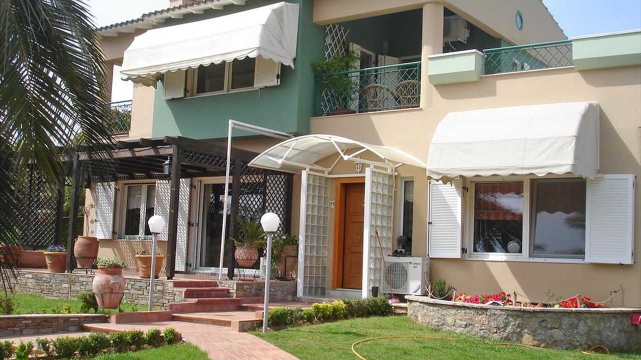 Продается вилла площадью 320 кв.м в пригороде г.Салоник. Вилла состоит из двух этажей, на первом этаже находится гостиная с камином и кухней, санузел. Второй этаж располагает тремя спальными комнатами и санузлом с ванной. Вилла имеет во владение собственный участок площадью 1900 кв.м с великолепным видом на море и местность. На участке имееться великолепная летная веранда с барбекю а так же сауна и бассейн с возможностью наберать воду для бассейна с моря.