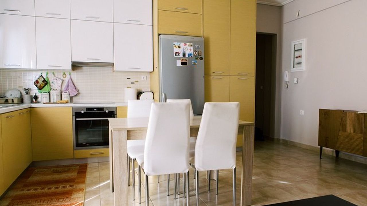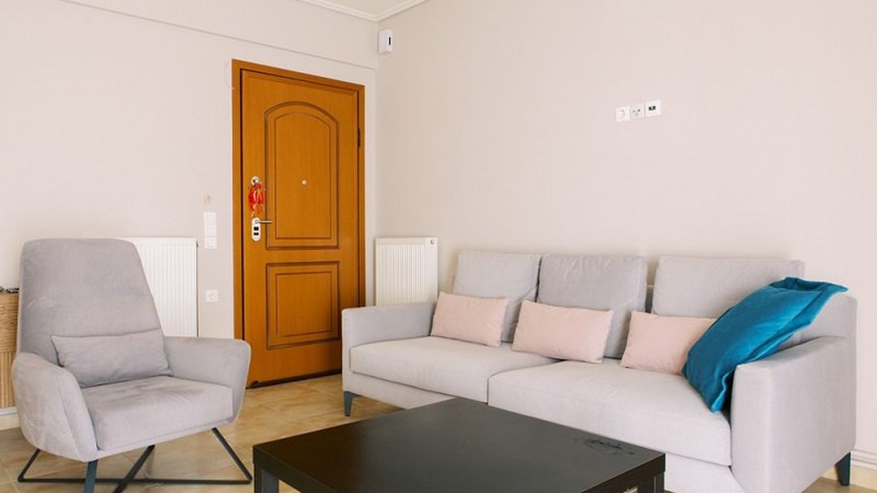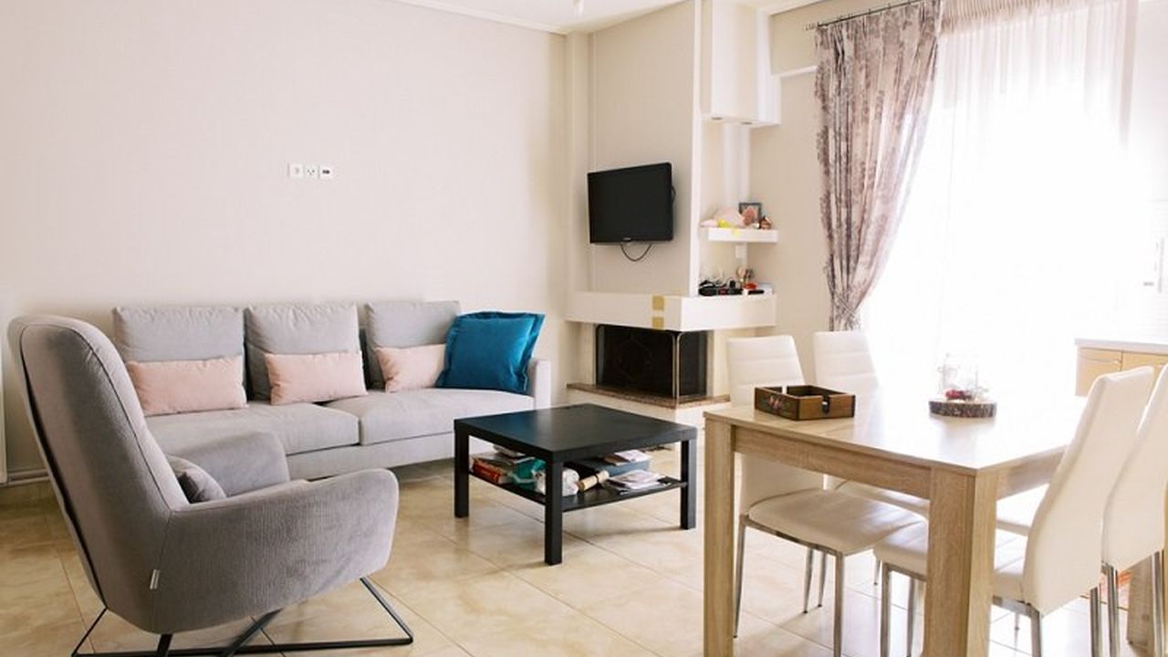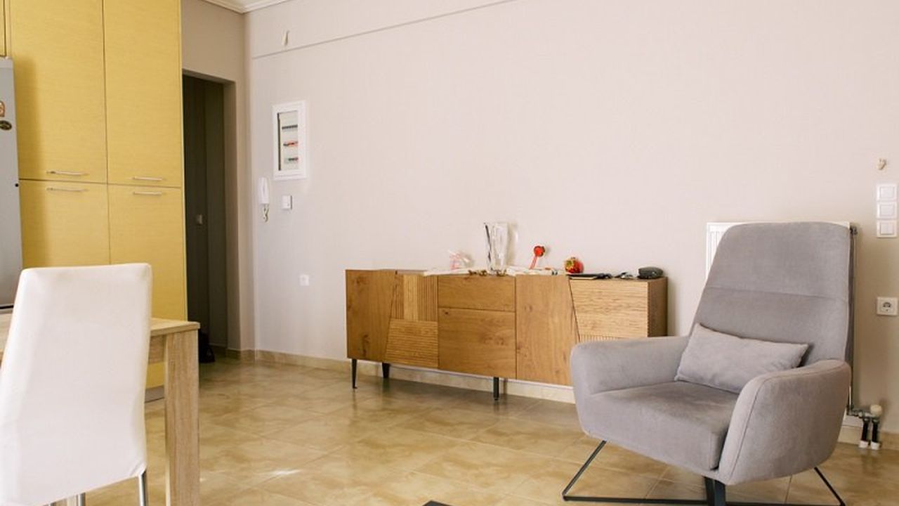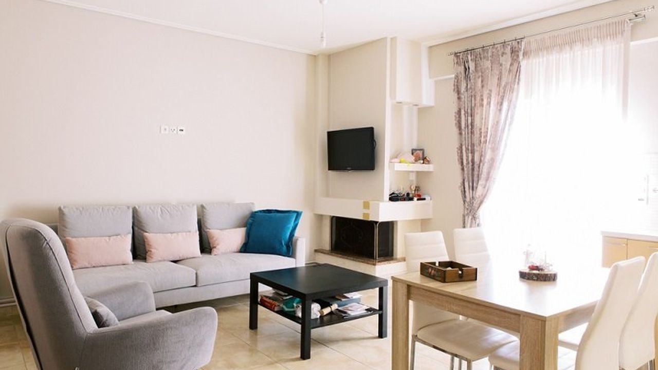 LAMIA, Neapoli. For sale apartment of 73 sq.m., 1st, 2 bedrooms, construction ’09. The apartment on the first floor of a two-storey building, with two bedrooms, open plan living room-kitchen with fireplace, hall and a bathroom. It has a large terrace overlooking the mountain, awnings and a natural gas autonomous heating. The building has an oil autonomous heating too. With parking and storage. Available from 01/07/2020. Price € 92,000, negotiable