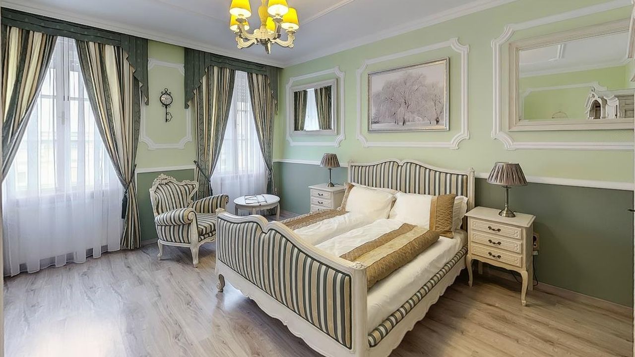В историческом центре города, на великолепной Erzsébet körút, в одном из самых престижных жилых комплексов Corinthia, 1899 г. постройки, предлагается на продажу четырёхкомнатная квартира c антикварной мебелью и членством в клубе Royal SPA ( по желанию).