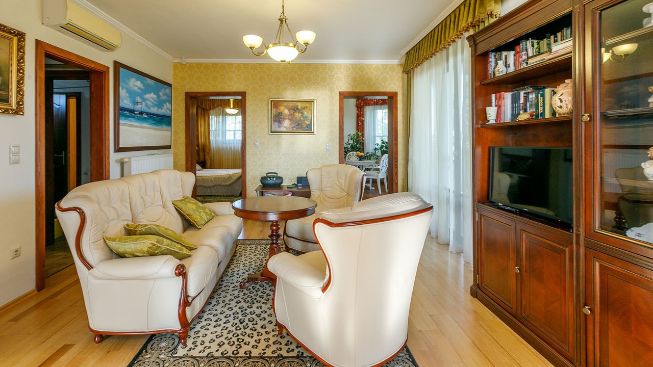• Недвижимость находится на просторном, ухоженном участке с большим садом и плодовыми деревьями. Интерьер дома оформлен со вкусом и оснащён качественной мебелью, сочетая в себе элегантность и комфорт. Вилла прекрасно подходит как для постоянного проживания, так и для отдыха.