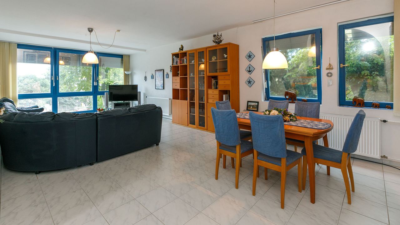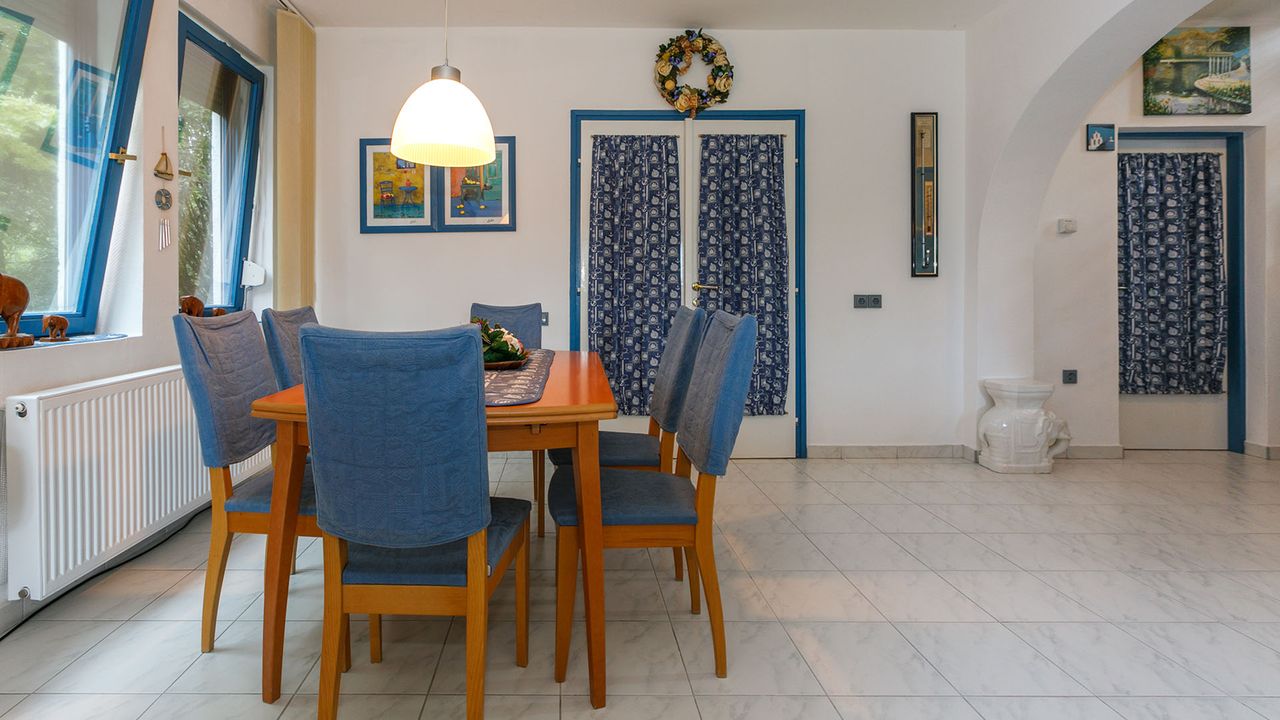 Дом обставлен в средиземноморском стиле, со светлой мебелью - в белых и синих тонах. Оборудование этого объекта на Балатоне также включает в себя чрезвычайно быстрый интернет, спутниковое телевидение и кондиционер в гостиной. Дом продается полностью меблированным и оборудованным, все это уже включено в цену покупки/продажи.