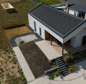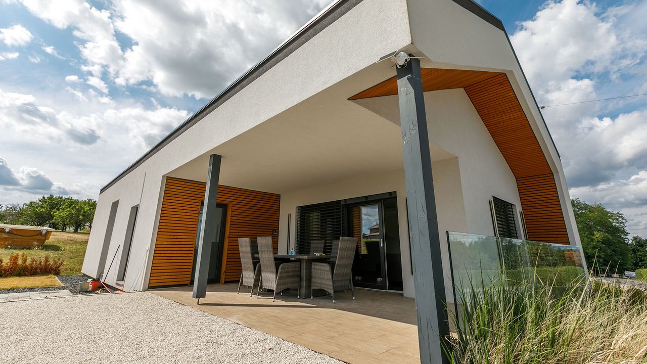 Этот новый дом, построенный в 2024 году, расположен в венгерском регионе Зала, недалеко от Хевиза. Он предлагает современный комфорт и природную среду.