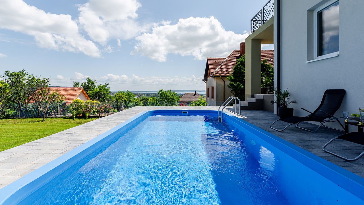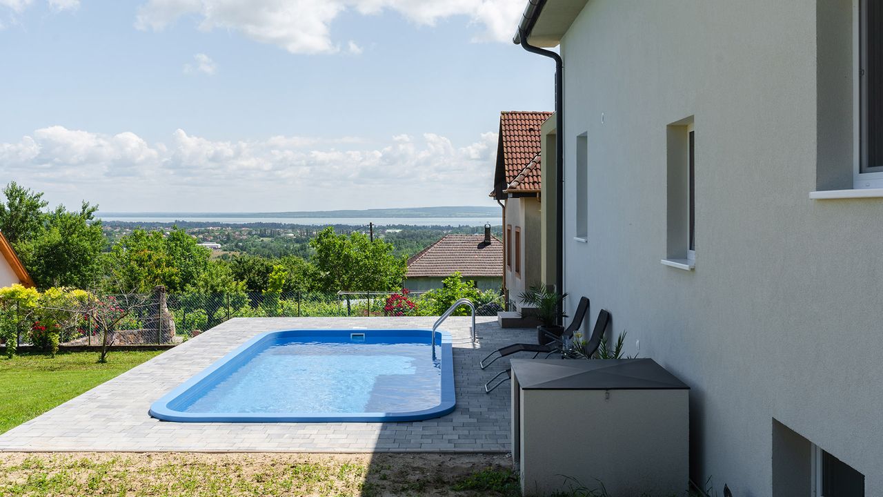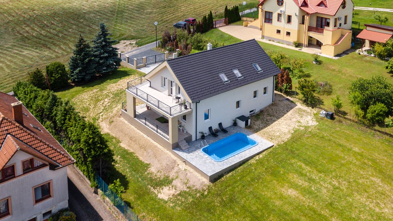 Венгрия. Черсегтомай. Дом с бассейном, гаражом и участком с панорамой на озеро Балатон.