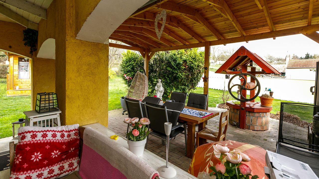 Во дворе имеется крытая парковка, на которой достаточно места для нескольких автомобилей. Дом расположен в тихом, дружелюбном месте, идеальный дом.