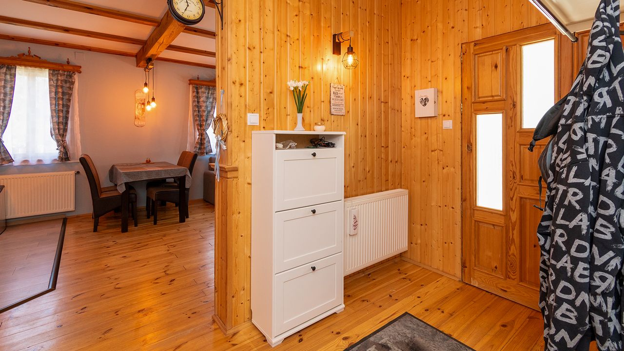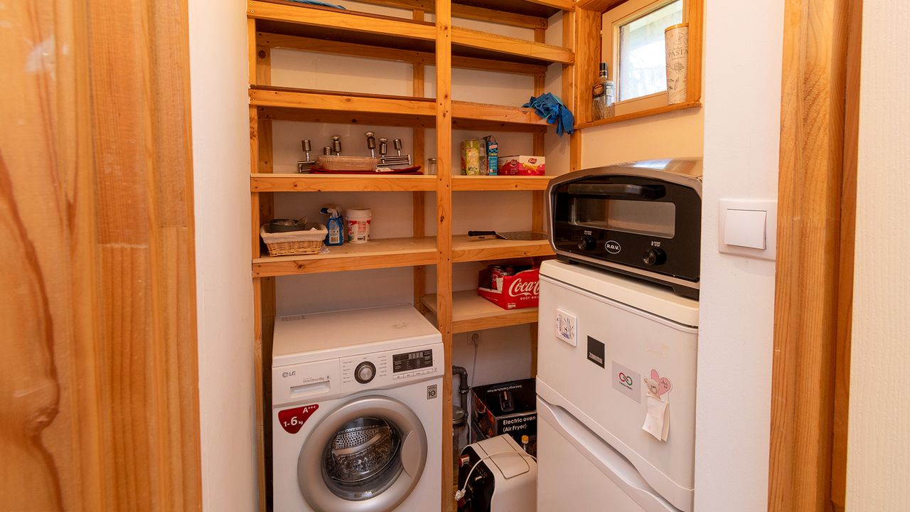 На первом этаже находятся гостиная, просторная кухня-столовая, ванная комната и отдельный туалет. На мансарде расположены уютная спальня, гардеробная и ванная комната. Особенностью дома является многофункциональная кондитерская мастерская, а также мастерская, котельная и сарай с прямым доступом.