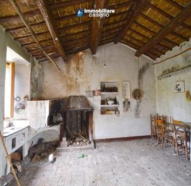 Ancient stone farmhouse on two storeys with beautiful panoramic view of the Abruzzo hills of for sale in Carpineto Sinello, Province of Chieti. On the ground floor there are four rooms used as a cellar, two of which completely in stone with ancient arches and vaulted ceilings. On the first floor there is a spacious room, a kitchen with fireplace and old wood stove that was used for baking bread and pizza and a spacious terrace with views of the hills. The property has approximately 2.000 sq m of land, but it's possible to buy separately more land. The property is old but structurally good. The water and electricity services pass near the cottage.