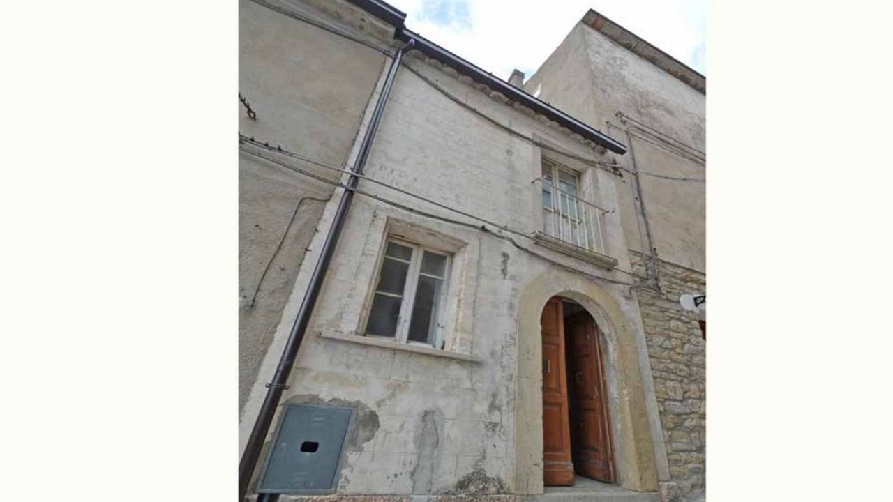 Старинный каменный дом с мраморным арочным проемом и панорамной террасой на продажу в регионе Абруццо, в муниципалитете Фраине. Дом на двух этажах в общей сложности около 70 квадратных метров.