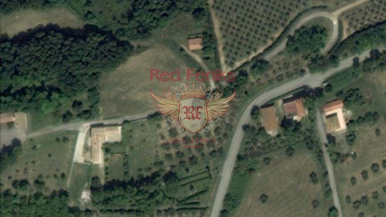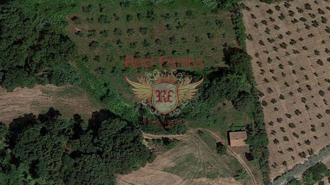 Участок состоит из двух уровней: на одном находится старый дом под реконструкцию 100 м2, который можно перестроить с увеличением площади, на другом растут оливковые деревья (около 100).