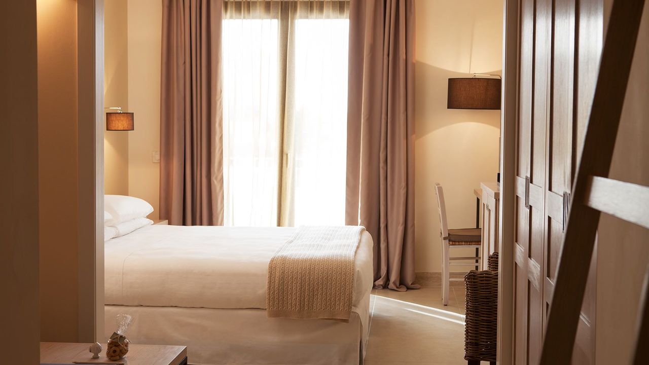 Все комнаты имеют собственный балкон или террасу с видом на море, на горы или на бассейн. Ванные комнаты отделаны мрамором, есть гидромассажные ванные или просторные душевые кабины. Комнаты оснащены: телевизор 32", минибар, радио, письменный стол, сейф, интернет, отопление и кондиционер, матрацы memory.