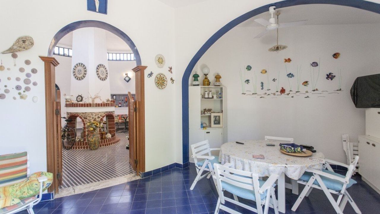 Небольшой курортный городок Пульсано находится в регионе Апулия на юге Италии. Вилла, которая имеет интересную круглую форму, общей площадью 195 м2, с 4 спальными и 2 ванными комнатами, кухней со столовой зоной, расположенными вокруг гостиной с камином. Комнаты просторные и светлые, керамические полы, оригинальная мебель. Есть прачечная и гараж 20 м2