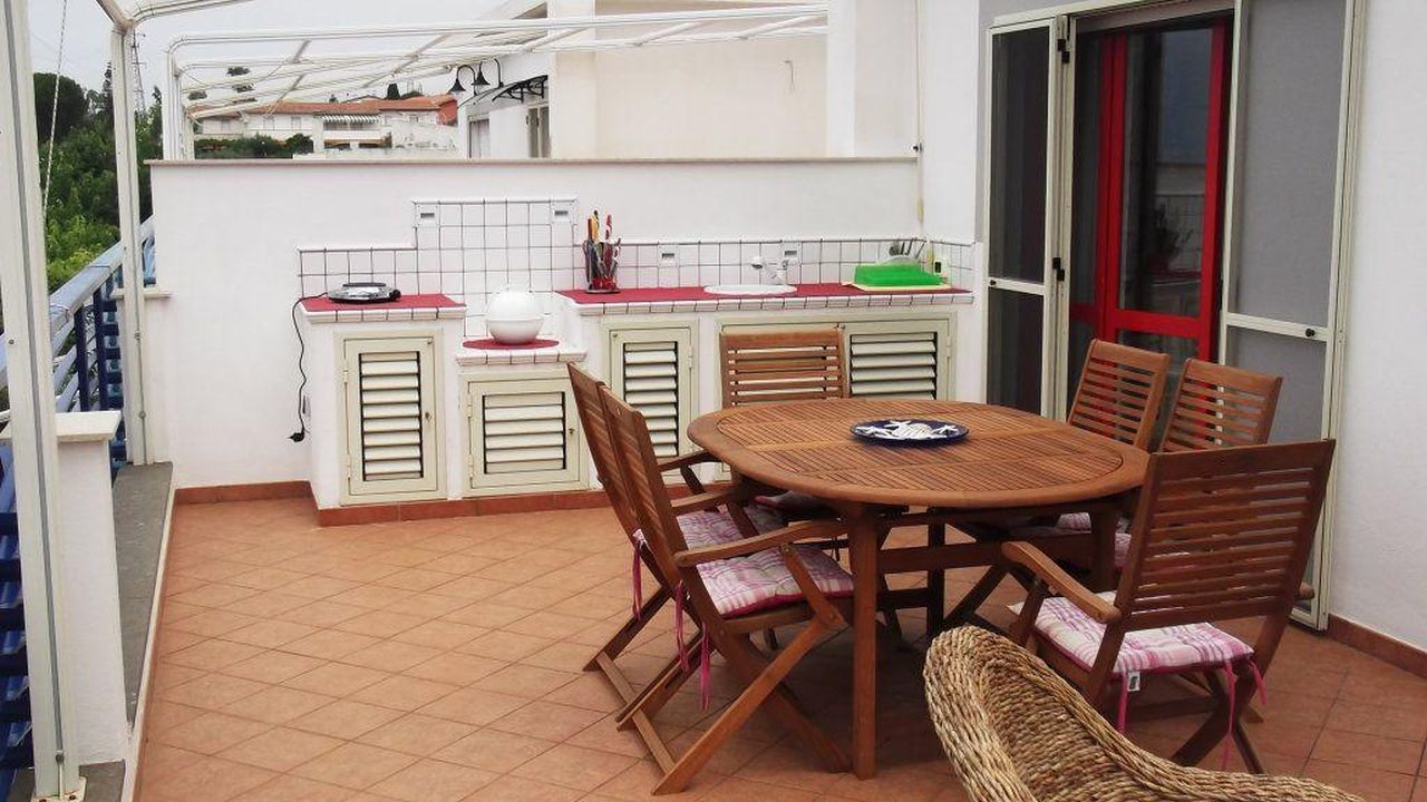 Жилой комплекс имеет собственную территорию, на которой есть бассейн, рекреационные зоны, детская площадка, парковка для автомобилей открытого типа. Квартира расположена в доме на первом этаже, жилая площадь 70 кв.м, эксклюзивная терраса 50 кв.м, с панорамным видом на остров Дино и весь залив. Планировка квартиры: уютная отдельная кухня, оборудованная всем необходимым; удобная и просторная гостиная с мягким диваном, станет любимым местом для отдыха; две просторные спальни; ванная комната с душем, сантехника все в отличном рабочем состоянии; терраса с мини-кухней, которая предлагает панорамные виды на обширные просторы Тирренского моря, где вы можете полюбоваться волшебным восходом солнца или вечером наблюдать его постепенно исчезнуть за горизонтом моря. Квартира для тех, кто просто хочет приехать и жить, без дополнительных инвестиций, полностью меблирована, очень чистая и уютная, готова к переезду или аренде! В одиночку с морем и природой, наслаждайтесь великолепными видами, выдерживая над суетой и суетой мира. Наслаждайтесь свежестью морского бриза и великолепием южной природы каждый день!