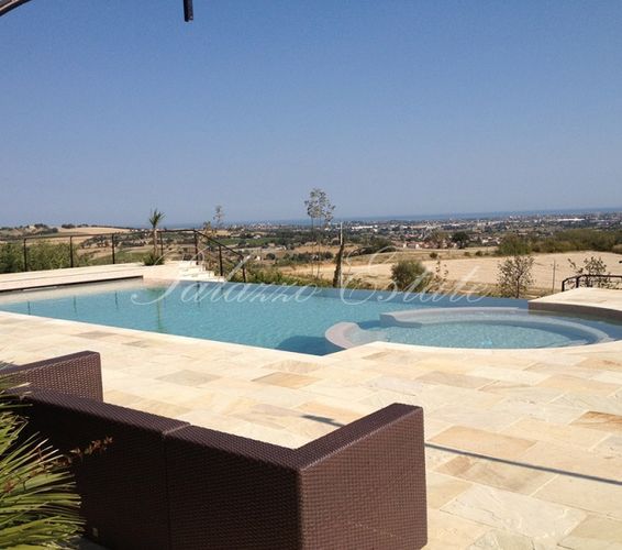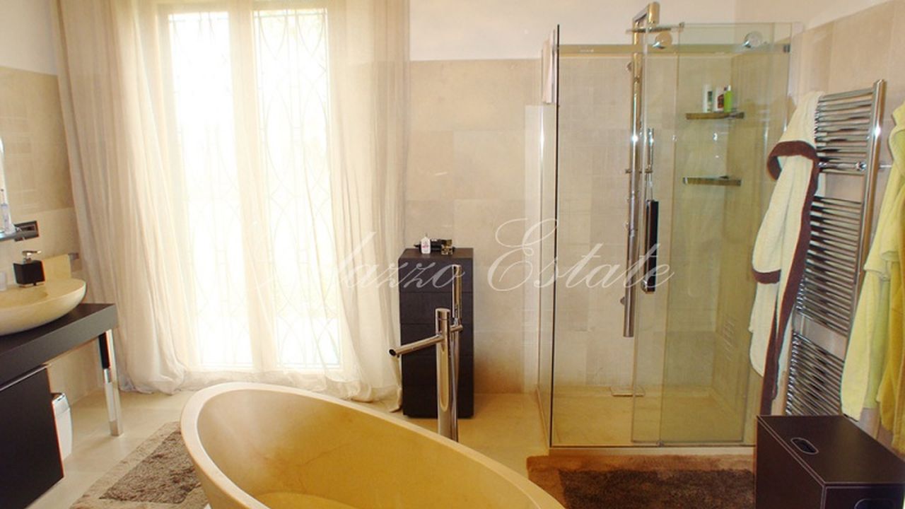 Дополняет недвижимость беседка 5х4м с уложенными полами. Она идеально подходит для ужинов на свежем воздухе. Кроме того имеется отдельный гараж (250 кв.м), бассейн и гидромассажная ванна с видом на море и электрическим механизмом закрытия.