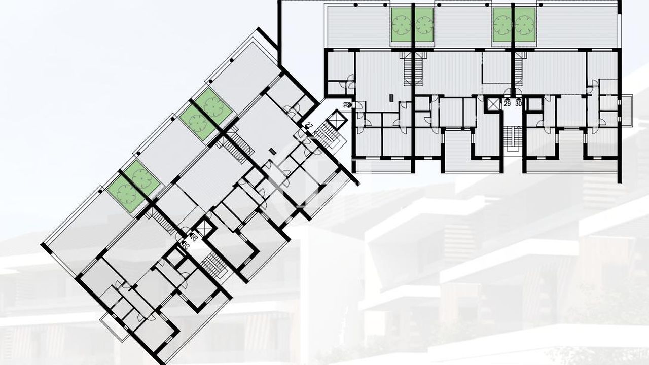 Как предварительный просмотр, мы предлагаем, в пределах новой резиденции с бассейном скоро будет построен, различные квартиры, включая квартиры THREE-ROOM, расположенные либо на первом этаже с частным садом или на первом этаже с террасами.