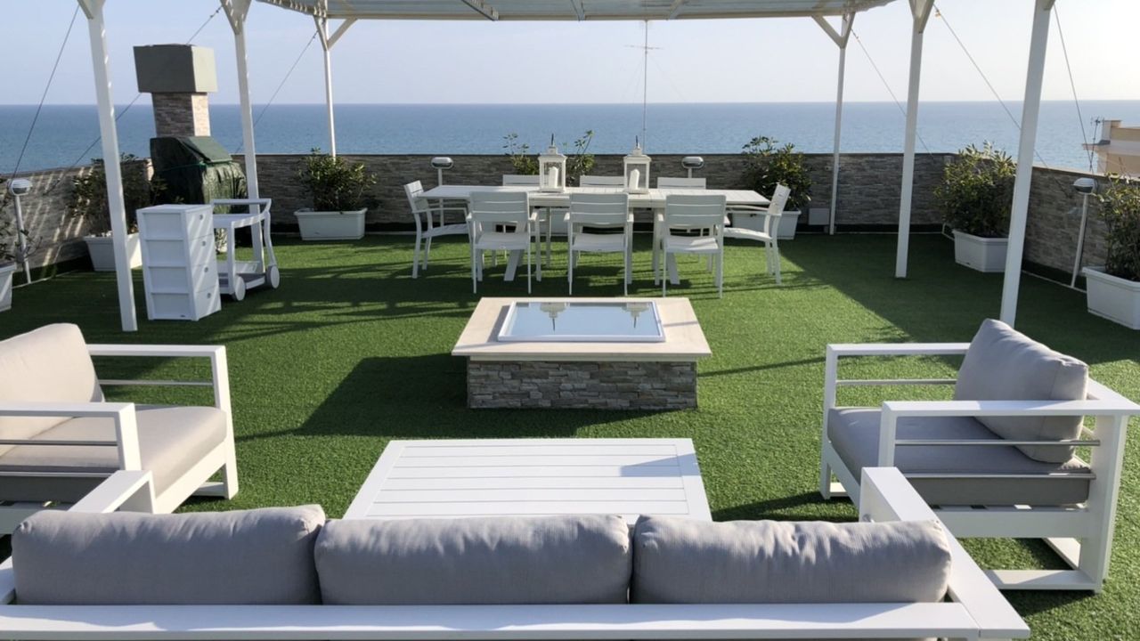Площадь 175 кв. м, 4/4 этаж, без лифта, салон, кухня/столовая с камином и выходом на террасу, большой рабочий кабинет с выходом на террасу, 2 спальные комнаты, гардеробная, 2 ванные, 2 террасы, климат - контроль, автономное отопление, охранная система, высота потолка 3,20 м, панорамная терраса на крыше с великолепным видом на море. В 2017 году произведен капитальный ремонт с использованием высококачественных материалов и фурнитур. Эксклюзивный пентхаус продается с мебелью и оборудованной кухней, расположен в 50 м от моря, в 400 м от исторического центра Анцио, в 55 км от Рима и аэропорта Фьюмичино