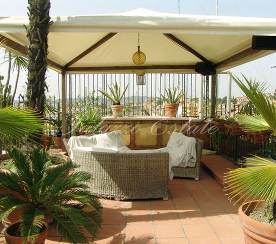 Данная недвижимость расположена рядом с площадью Barberini. Это апартаменты, занимающие шестой и седьмой этаж палаццо, располагают площадью 250 кв.м плюс 200 кв.м террас, с которых открывается панорамный вид на город.